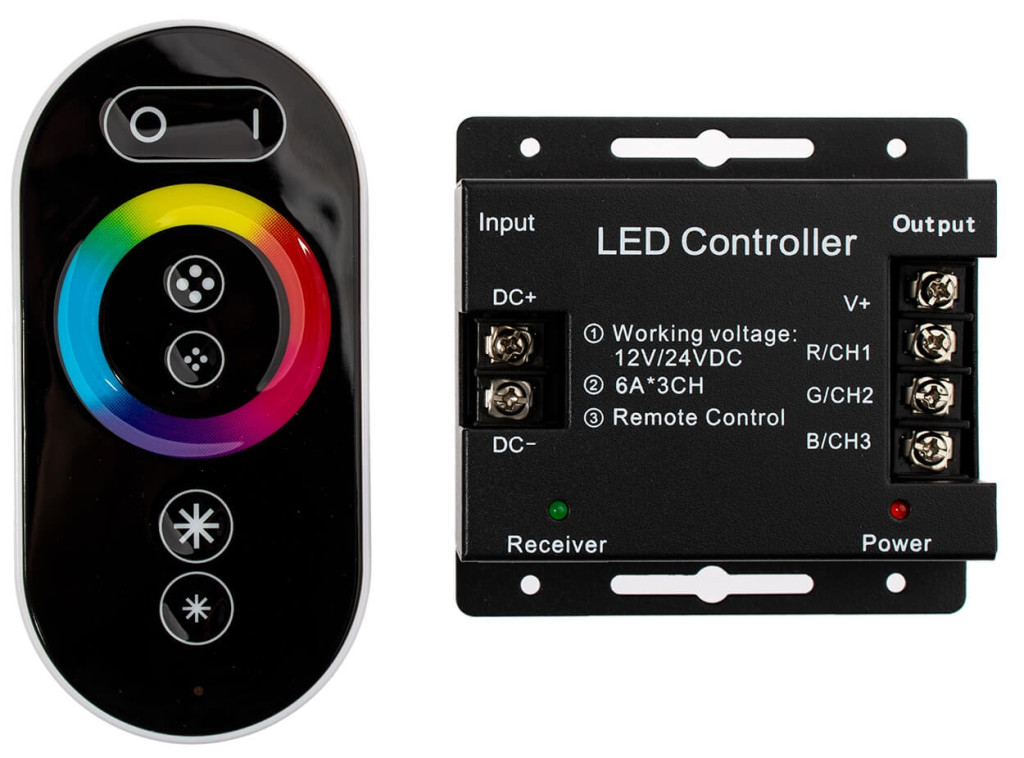 216W 3x6A vezérlő + RF RGB TOUCH TÁVIRÁNYÍTÓ 6 GOMB