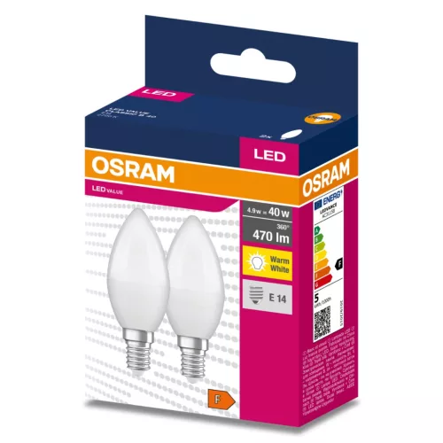 2db LED izzó E14 B35 4.9W = 40W 470lm 2700K Meleg 220° OSRAM ÉRTÉK