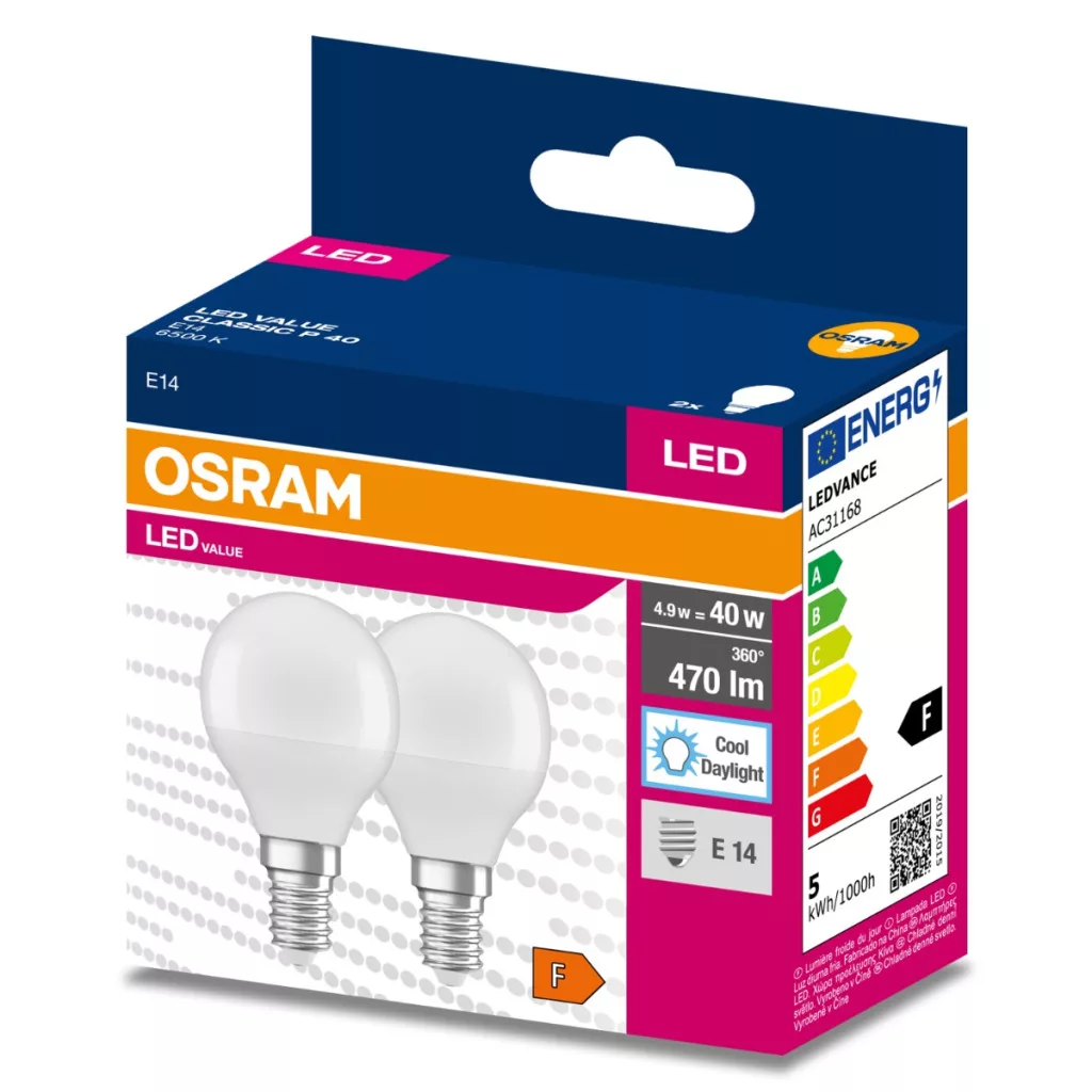 2db LED izzó E14 P45 4,9W = 40W 470lm 6500K Hideg 200° OSRAM ÉRTÉK