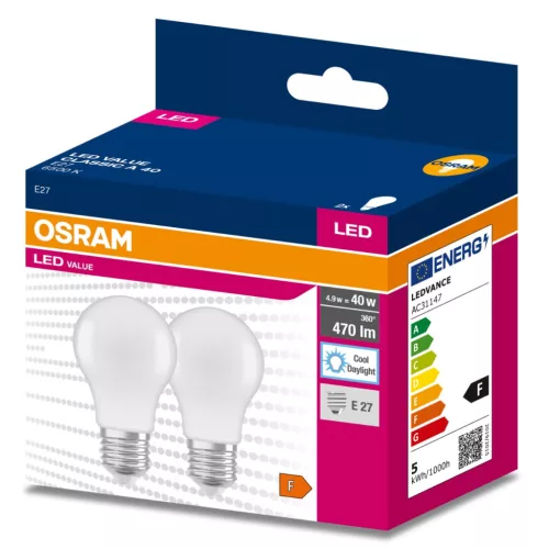 2PAK LED izzó E27 A60 4,9W = 40W 470lm 6500K hideg 200° OSRAM ÉRTÉK