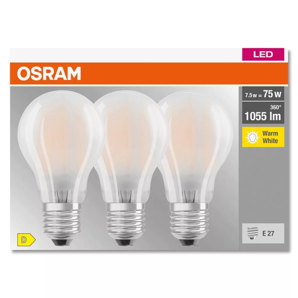 3db LED izzó E27 A60 7,5W = 75W 1055lm 2700K 300°-os izzószál OSRAM