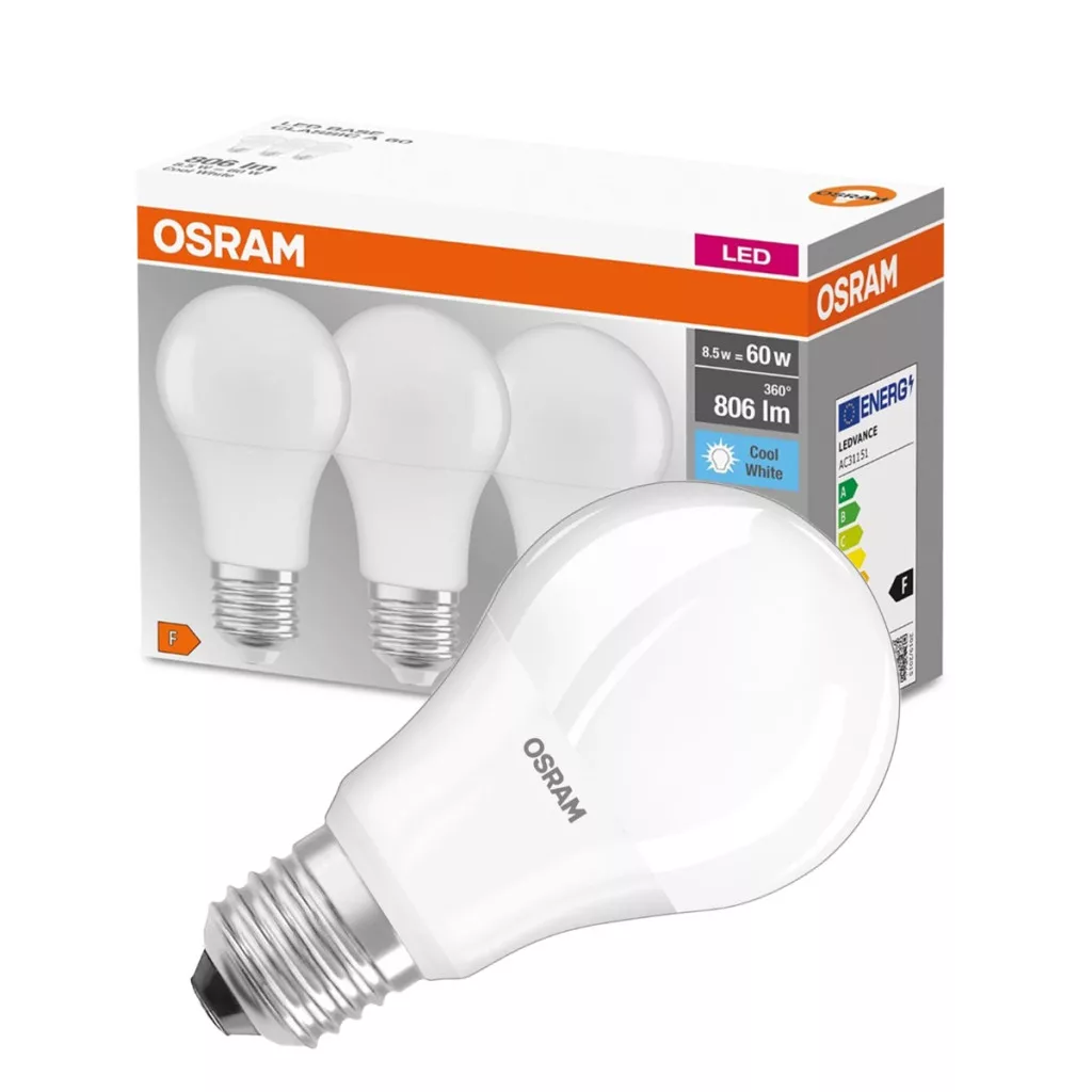 3PAK LED izzó E27 A60 8.5W = 60W 806lm 4000K Semleges 300° OSRAM