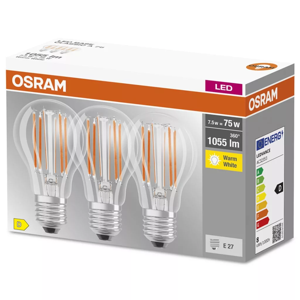 3db LED izzó E27 A60 CL 7.5W = 75W 1055lm 2700K 300° Izzószál OSRAM
