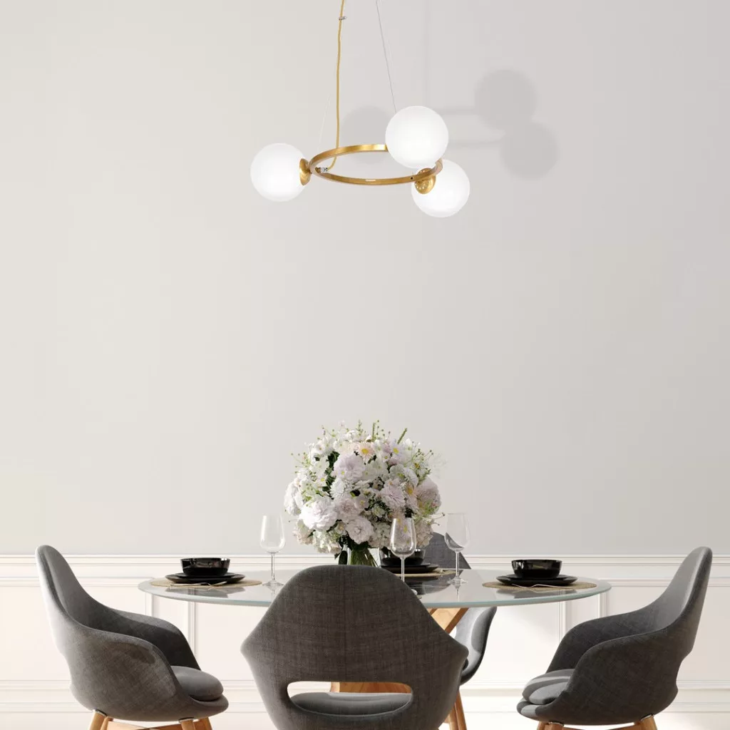 BÉCSI függőlámpa 3xE14 sárgaréz felni Geometrikus elegáns MLP5576 Milagro fém + üveg