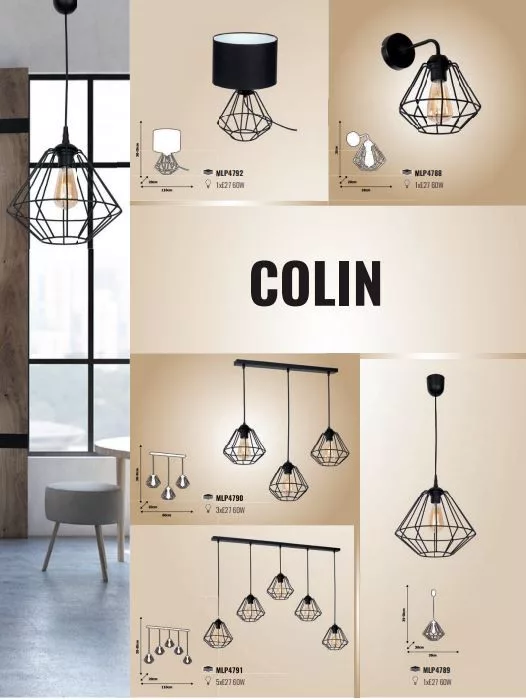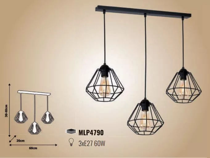 COLIN Fekete függőlámpa 3x E27 MILAGRO loft stílusú, ipari fém