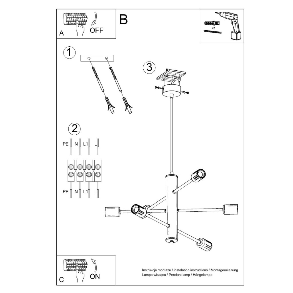 DUOMO 6 6xE27 függesztett mennyezeti lámpa tetőtéri csillár fekete SOLLUX