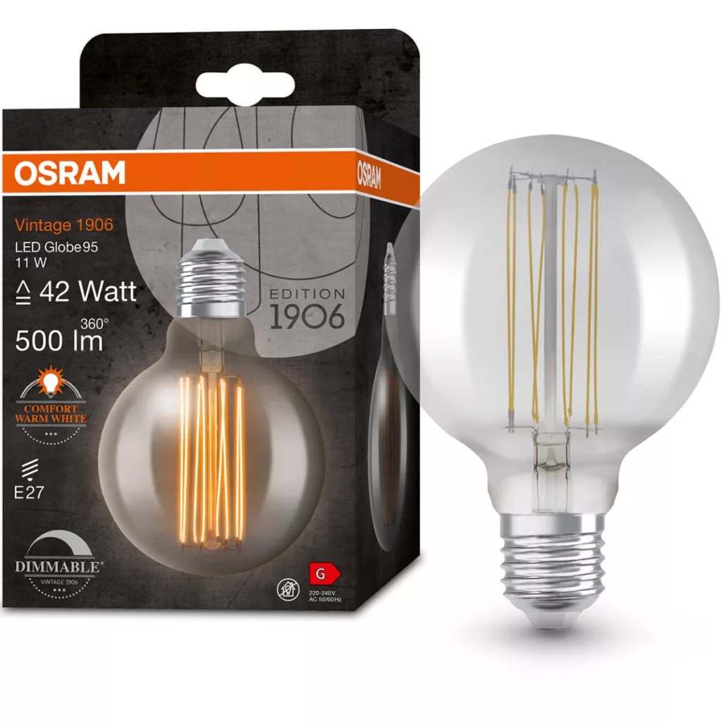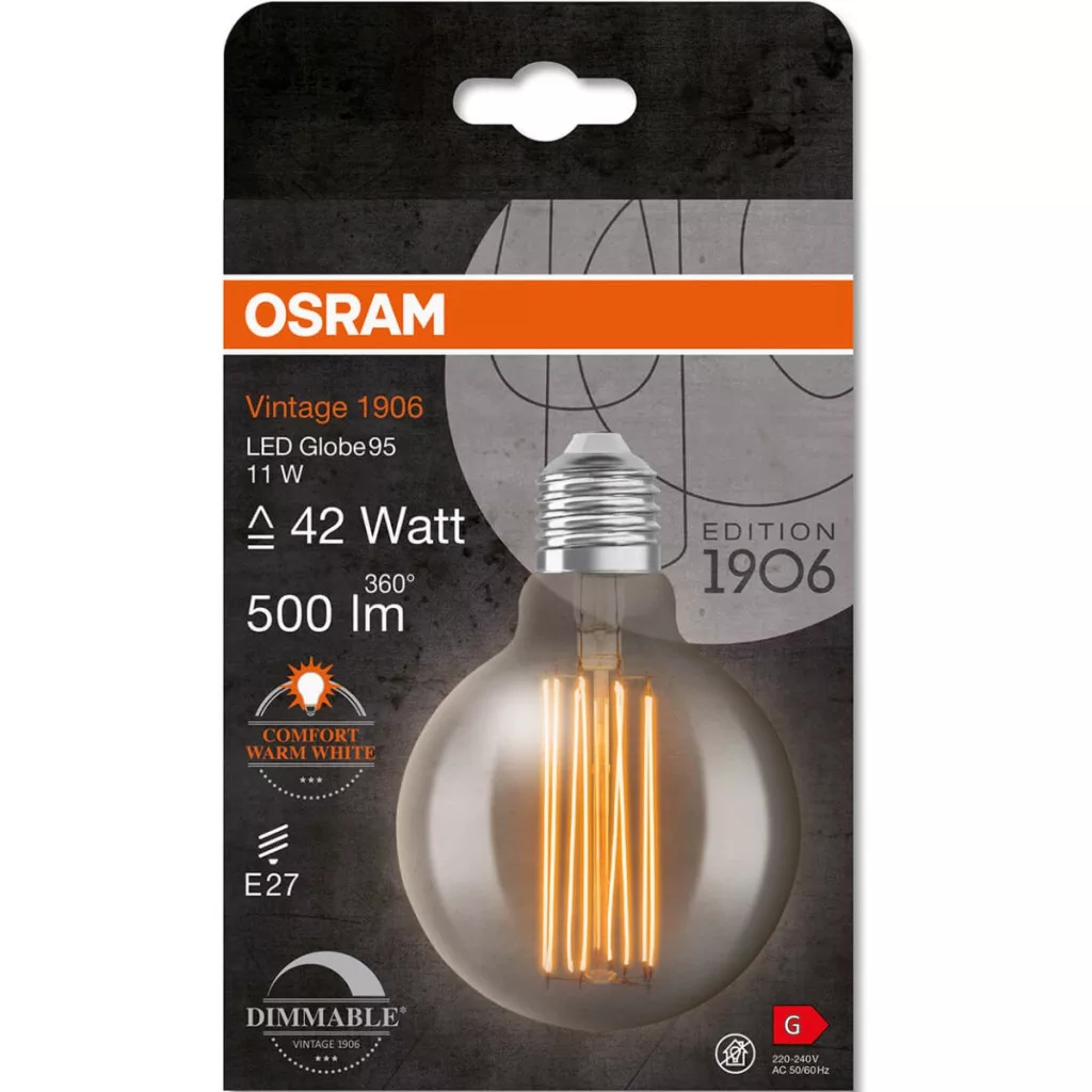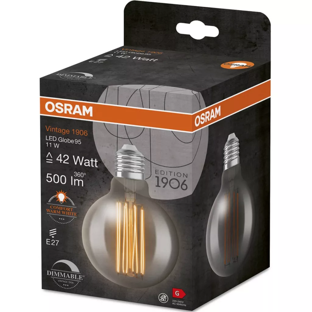 Dekoratív LED izzó E27 G95 11W = 42W 500lm 1800K meleg 320°-os izzószálas fényerőszabályzó OSRAM Vintage 1906