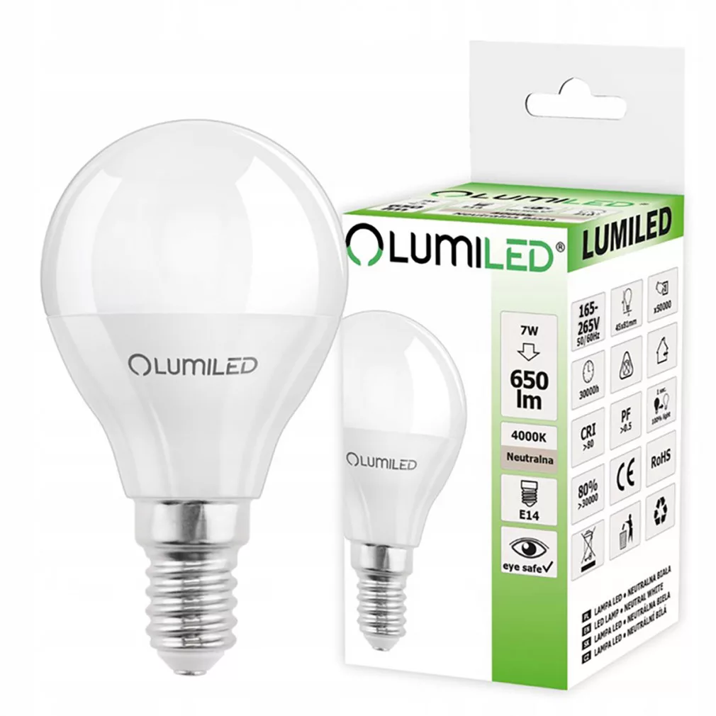 E14 P45 LED izzó 7W = 60W 650lm 4000K Semleges 180° LUMILED