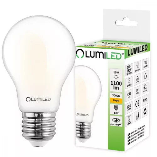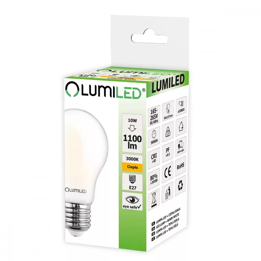 E27 A60 LED izzó 10W = 75W 1100lm 3000K meleg 360° LUMILED izzószál