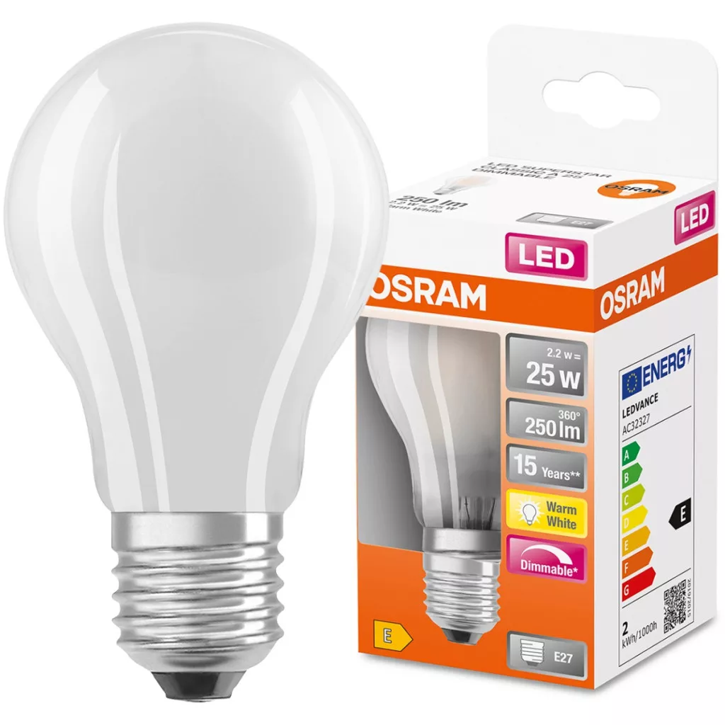 E27 A60 LED izzó 2,2W = 25W 250lm 2700K 300°-os izzószál szabályozható