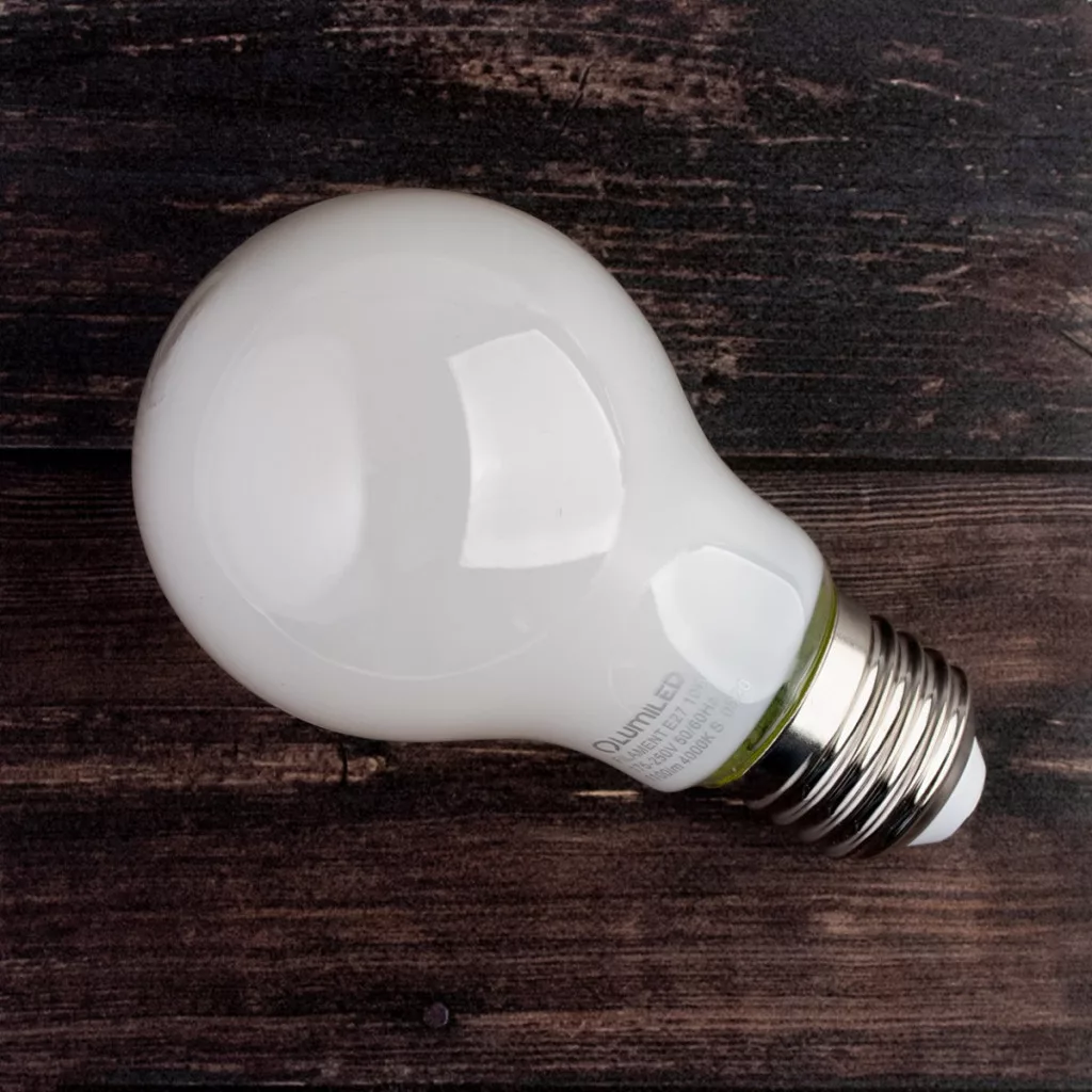 E27 A60 LED izzó 8W = 75W 1055lm 3000K 360°-os izzószál opál LUMILED