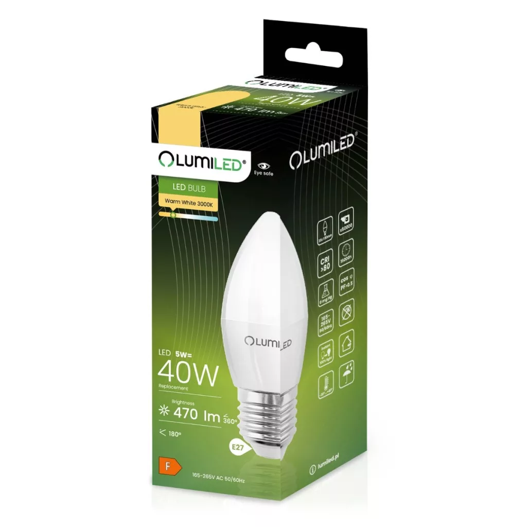 E27 B35 LED izzó 5W = 40W 470lm 3000K Meleg 180° LUMILED