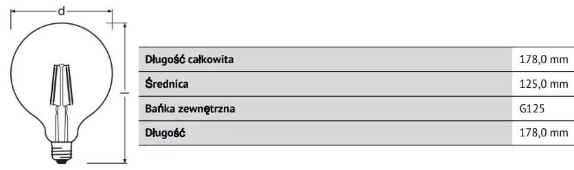 E27 G125 LED izzó 7,5W = 55W 650lm 2500K szabályozható