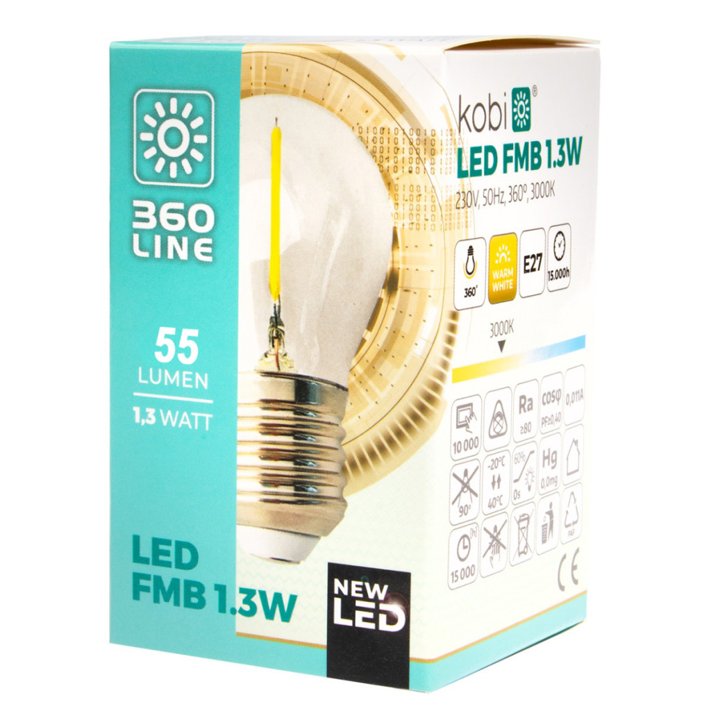 E27 G45 LED izzó 1.3W 55lm 2700K 360° KOBI Izzószálas Girlandhoz
