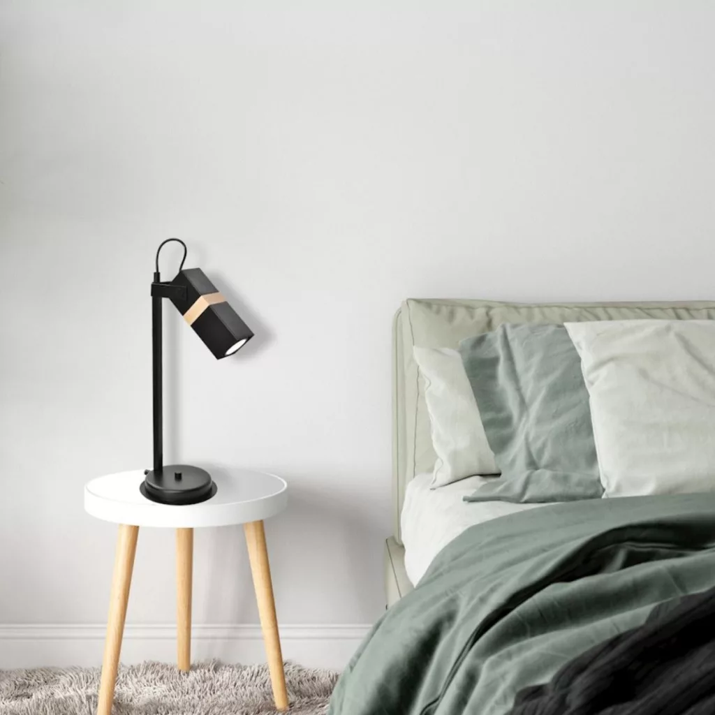 Éjjeli asztali lámpa fekete 1xGU10 VIDAR Milagro Metal + fa skandináv stílusban