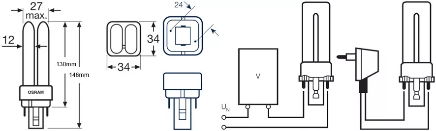 G24Q-2 fénycső 18W 1200lm 4000K Semleges 120° OSRAM Dulux D/E