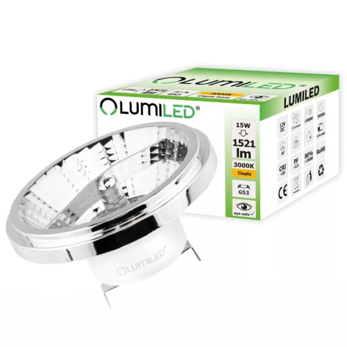 G53 AR111 LED izzó 15W = 100W 1521lm 3000K 24° 12V DC