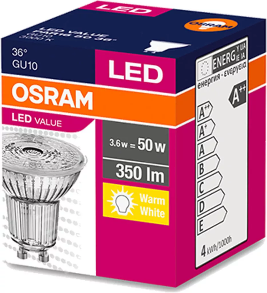GU10 LED izzó 3.6W = 50W 350lm 3000K 36° OSRAM
