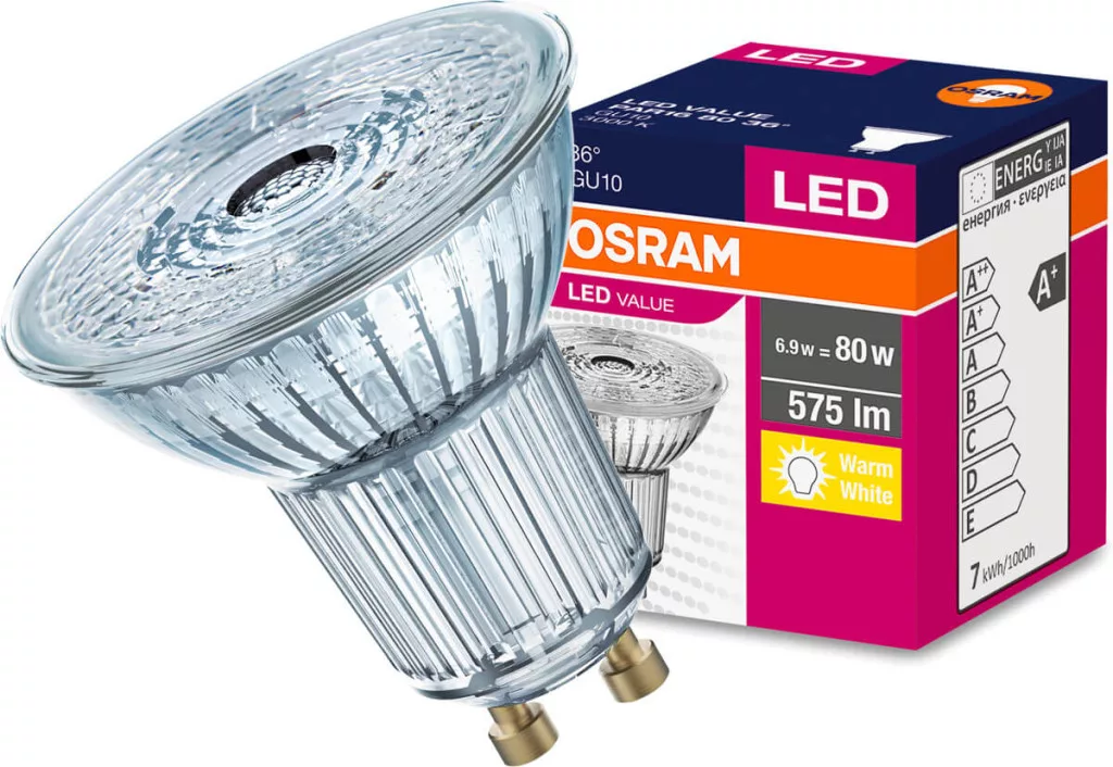 GU10 LED izzó 6.9W = 80W 575lm 3000K 36° OSRAM érték