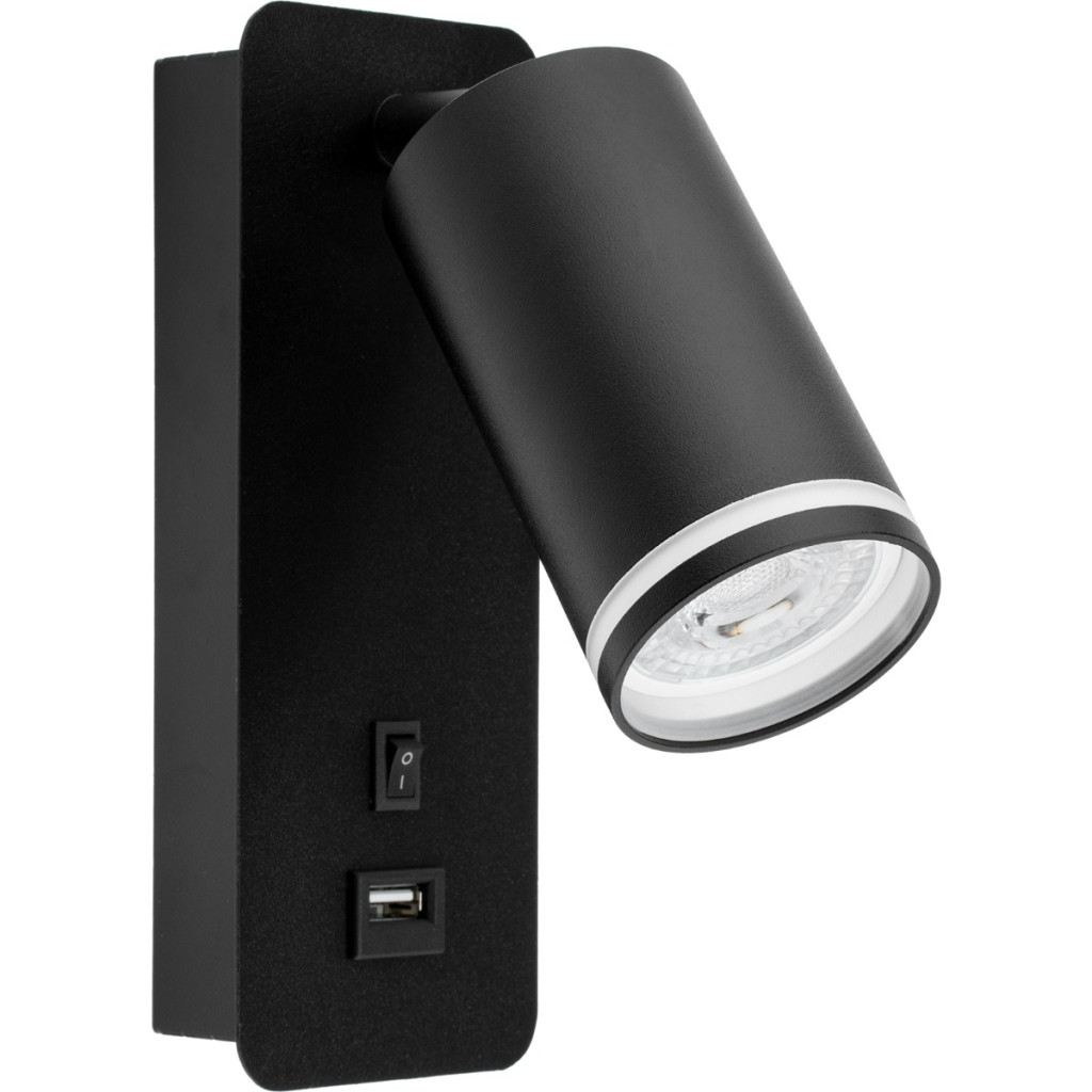 GU10 RING fali lámpa USB-vel és kapcsolóval, fekete