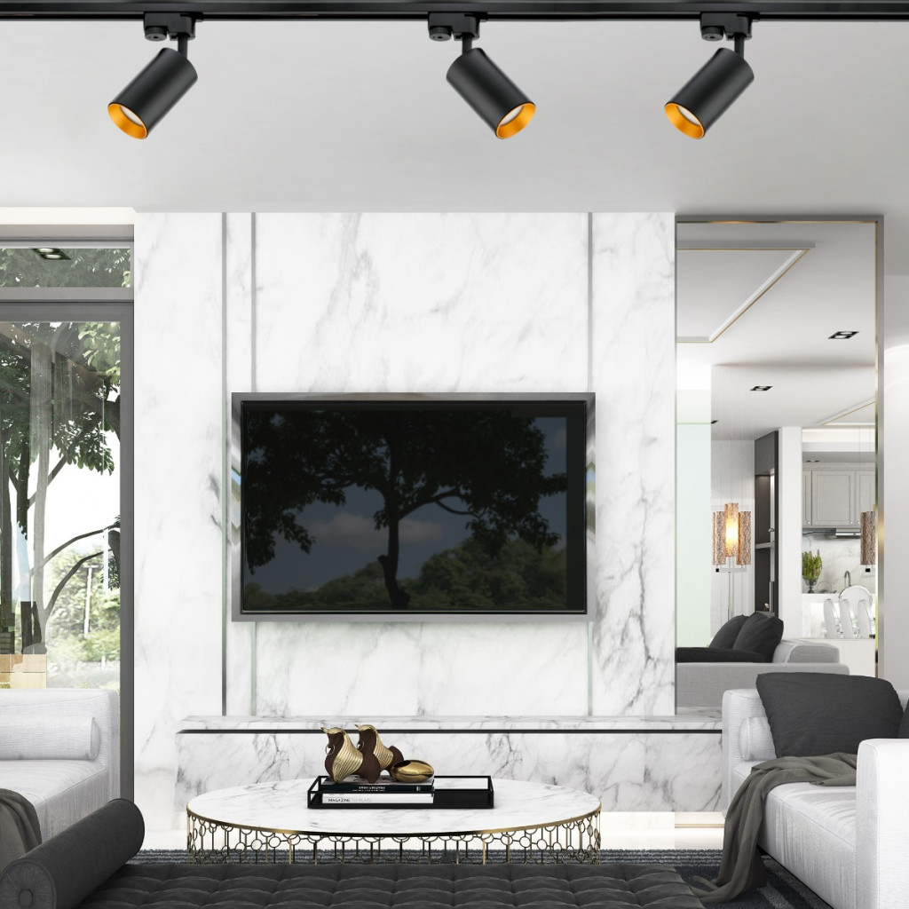 GU10 nyomvonalas spotlámpa fekete - arany SAGI lámpa egyfázisú sínekhez