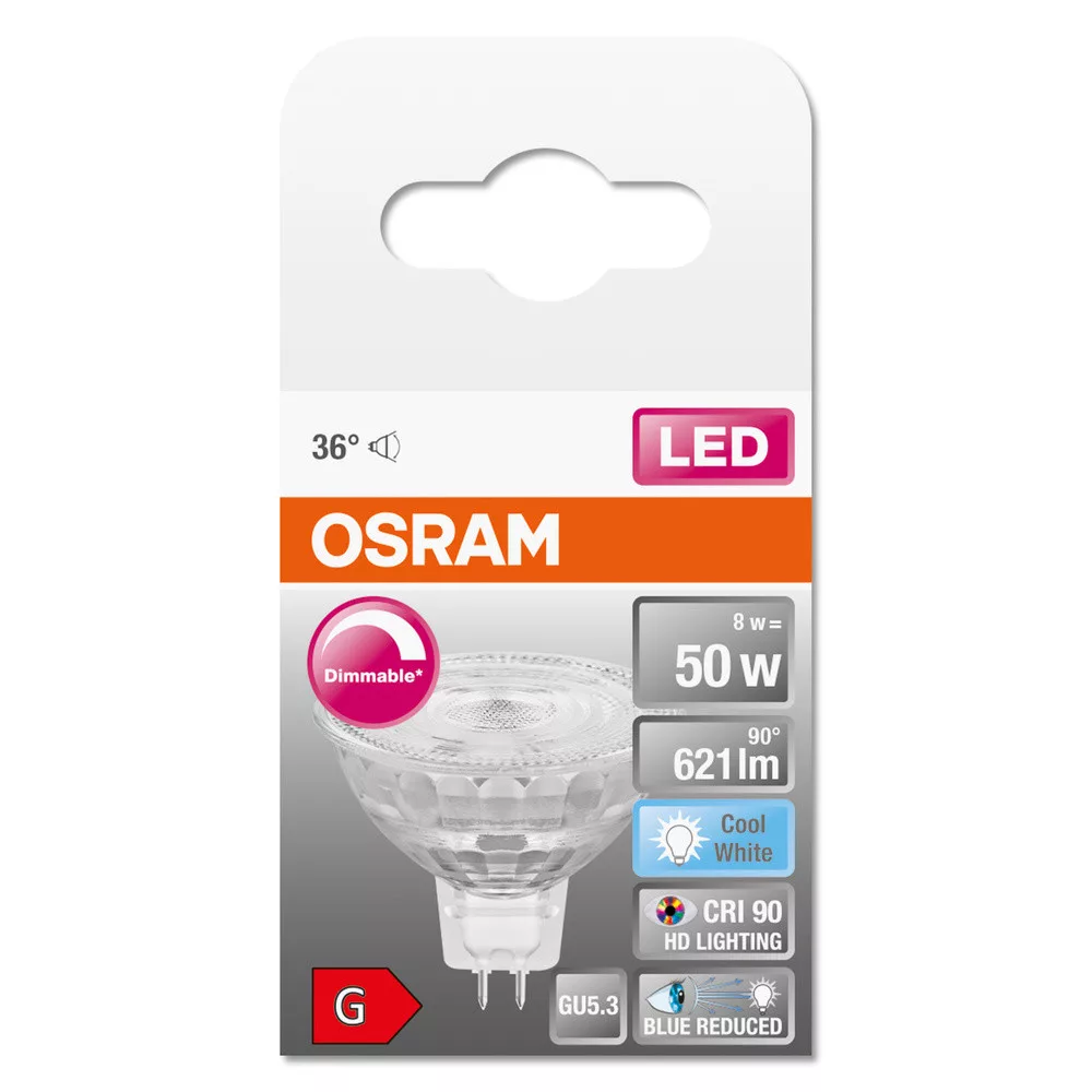 GU5.3 MR16 LED izzó 8W = 50W 670lm 4000K Semleges 36° CRI90 12V OSRAM SUPERSTAR+ szabályozható