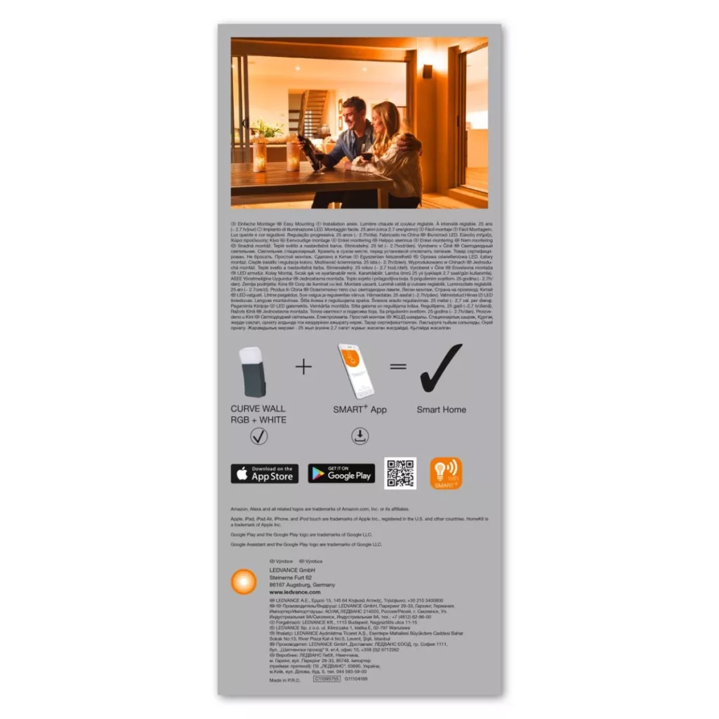 INTELLIGENS LED fali lámpa 9W RGB+W Sötétszürke SMART+ WiFi CURVE LEDVANCE