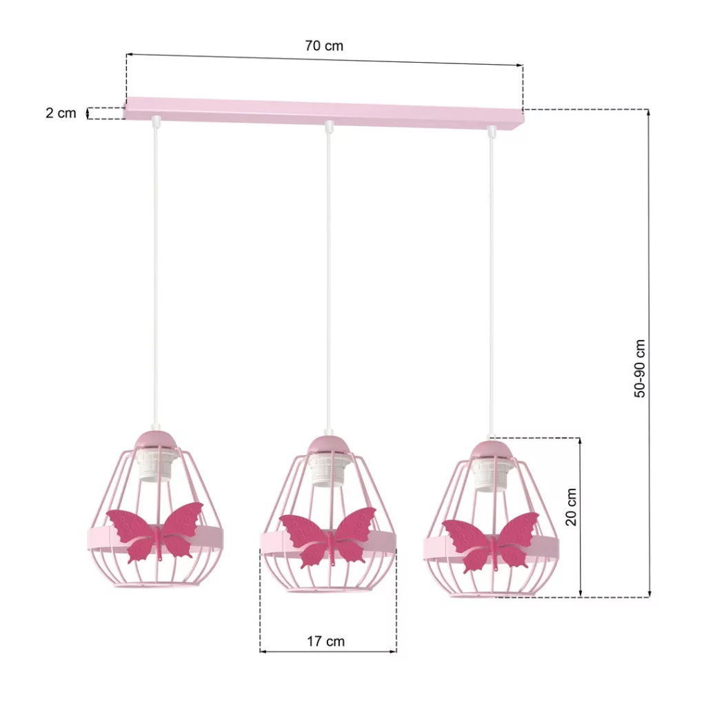 KAGO 3xE27 gyermek függőlámpa rózsaszín pillangó rózsaszín MLP4928 Milagro Metal