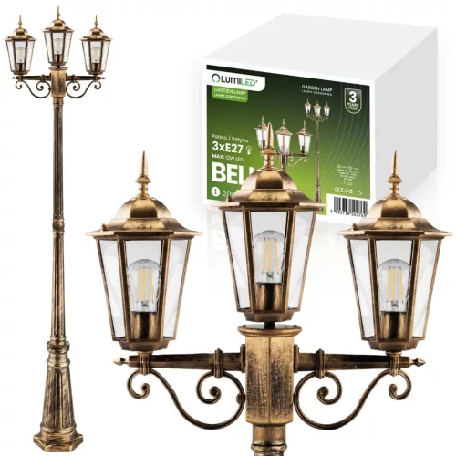 Kültéri kerti lámpa 3xE27 LÁMPÁS OSZTA 2m Patina BELLIS LUMILED