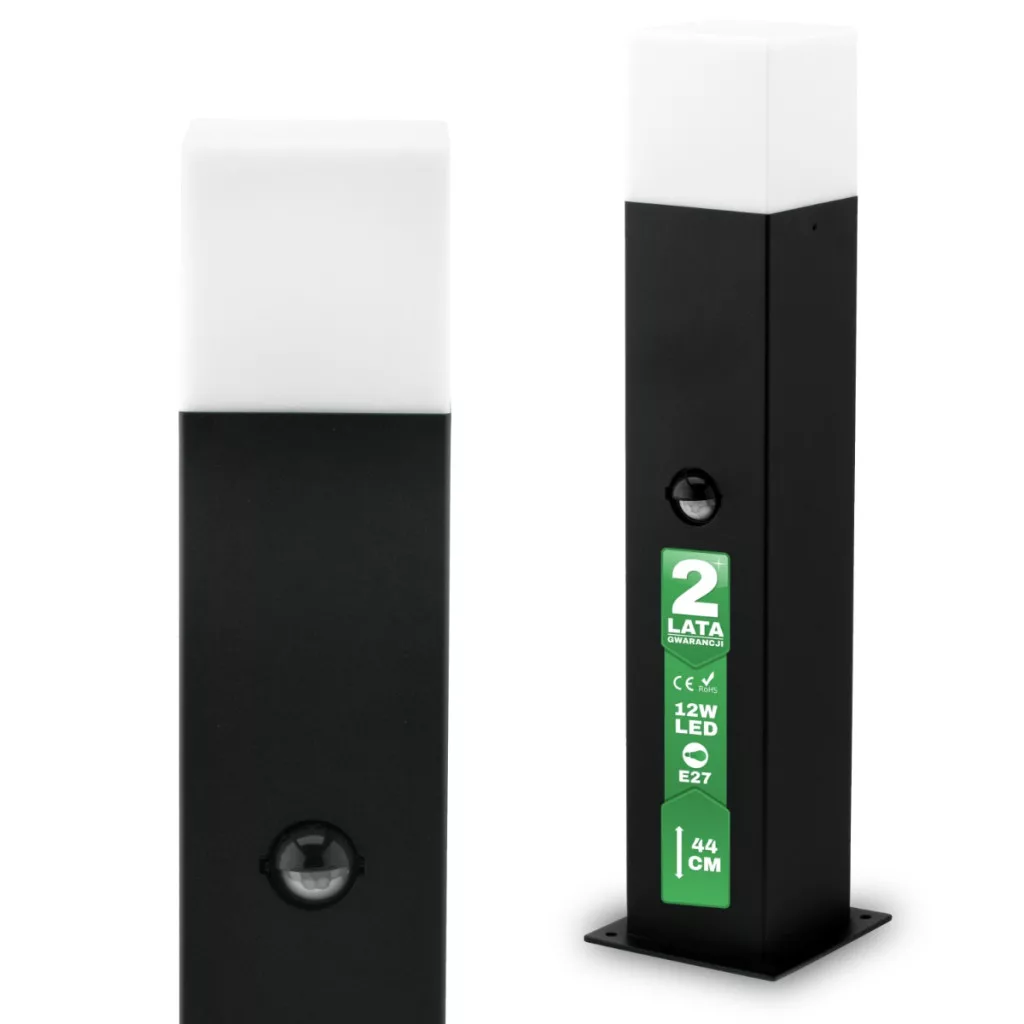 Kültéri kerti lámpa E27 SQUARE POST 44cm mozgásérzékelővel Fekete GALAX LUMILED