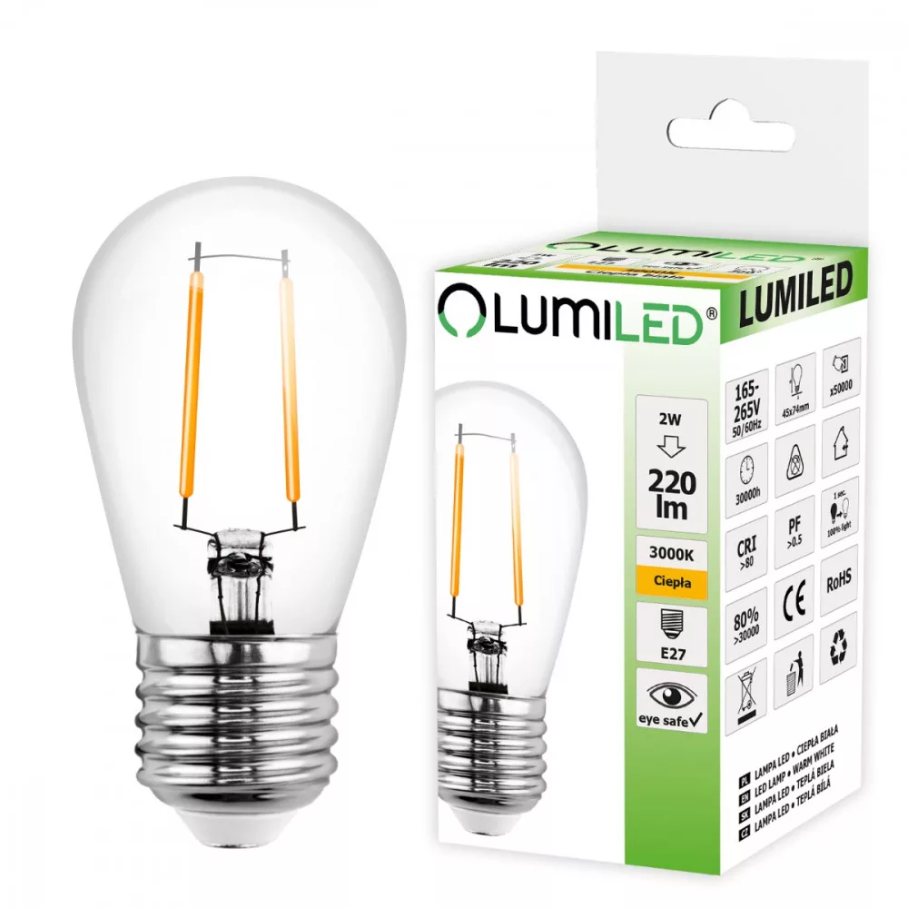 LED GOLYÓS IZZÓS IZZÓ A GiRLAND E27 ST45-HOZ 2W = 20W 220lm 3000K Meleg LUMILED