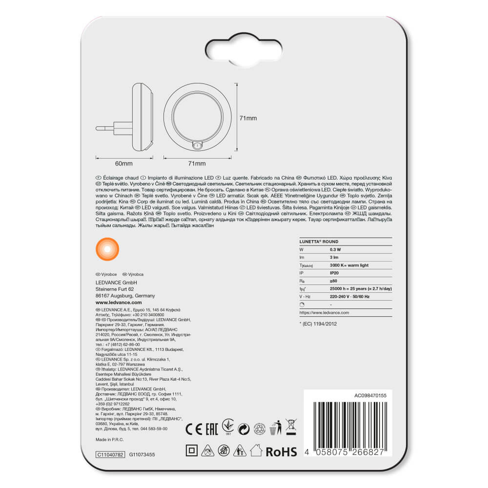LED éjszakai lámpa ORIENTÁCIÓS LUNETTA Round White 0,30W 3lm 3000K IP20 Ledvance