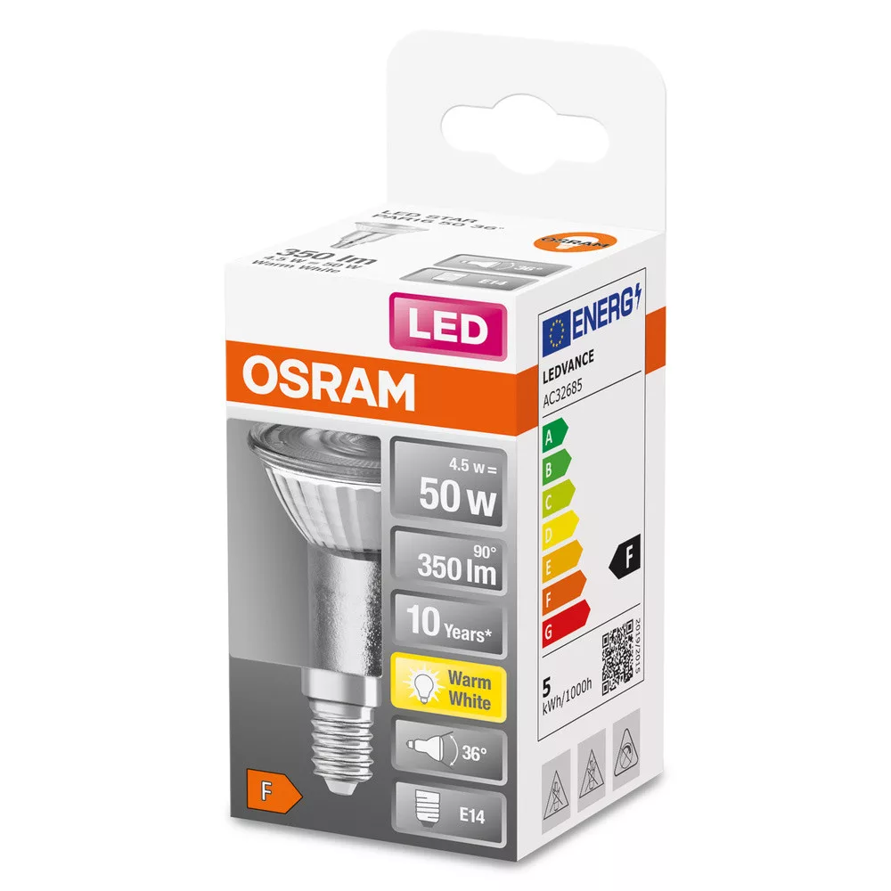 LED izzó E14 R50 4.5W = 50W 350lm 2700K 36° OSRAM STAR