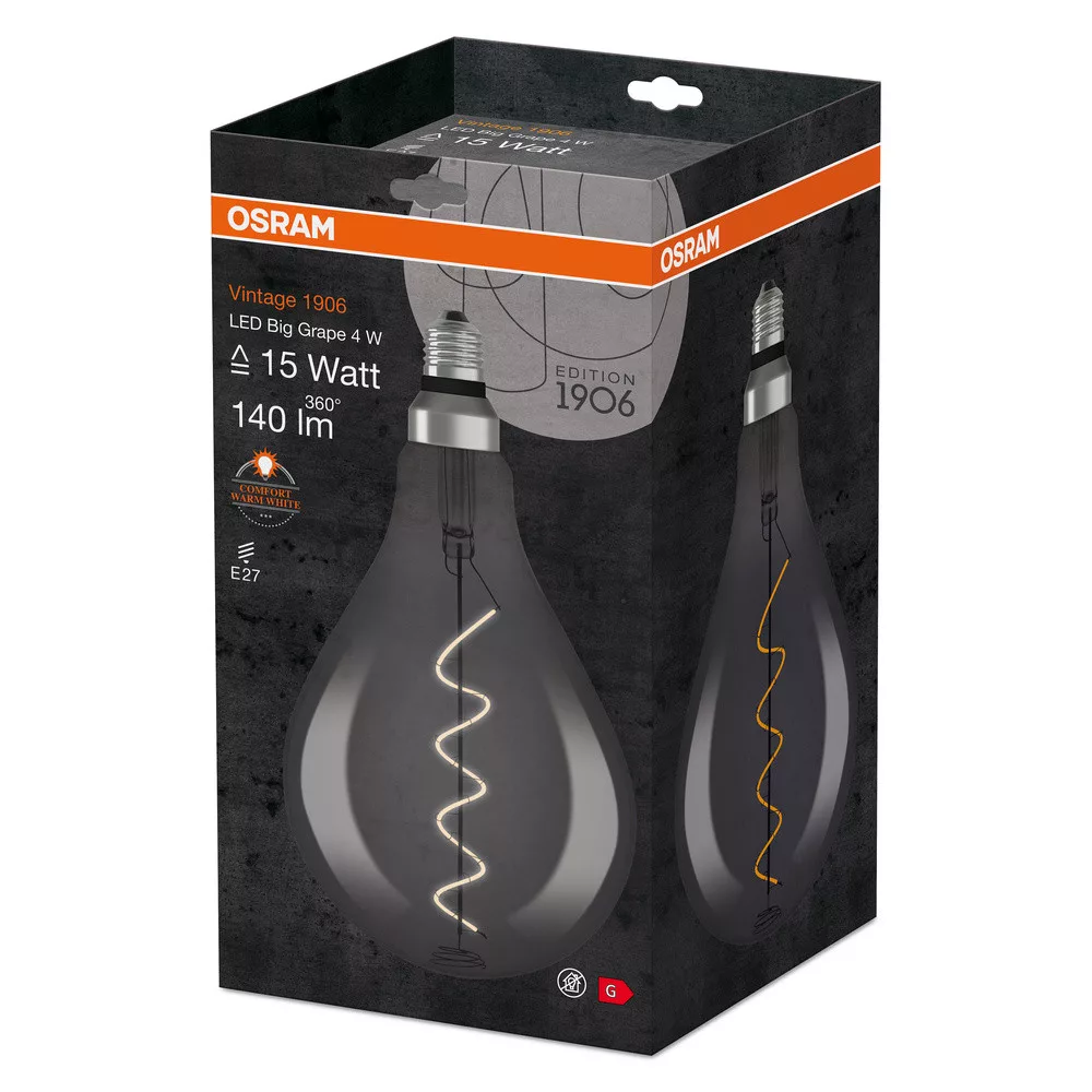 LED izzó E27 A60 4W = 15W 140lm 1800K 330°-os izzószál OSRAM Vintage 1906