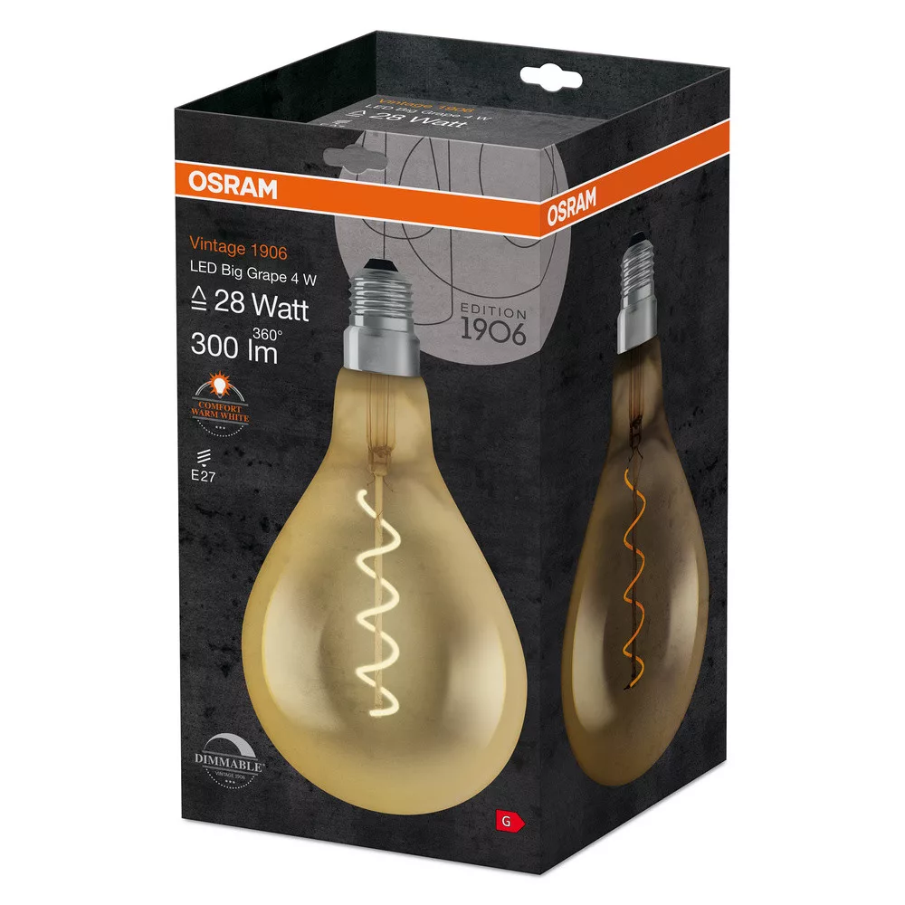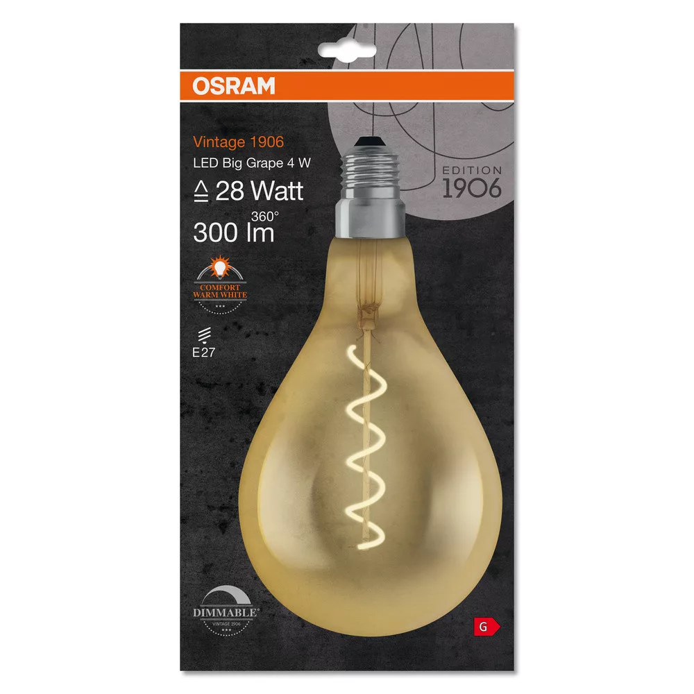 LED izzó E27 A60 4W = 28W 300lm 2000K 300° OSRAM Vintage 1906 izzószál szabályozható