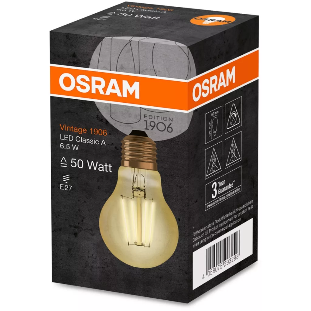 LED izzó E27 A60 6.5W = 55W 725lm 2400K 360° OSRAM