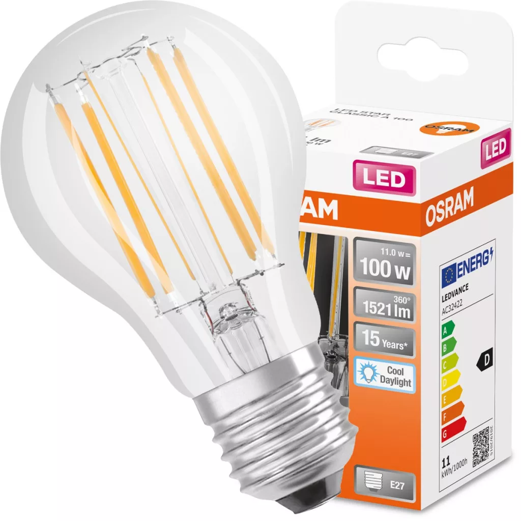 LED izzó E27 A60 CL 11W = 100W 1521lm 6500K Hideg 300° OSRAM STAR izzószál