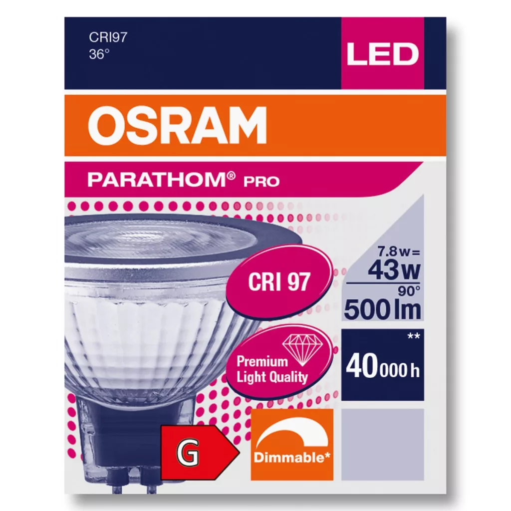 LED izzó GU5.3 MR16 7.8W = 43W 500lm 4000K Semleges 36° CRI97 12V DIMMÁLHATÓ OSRAM Parathom