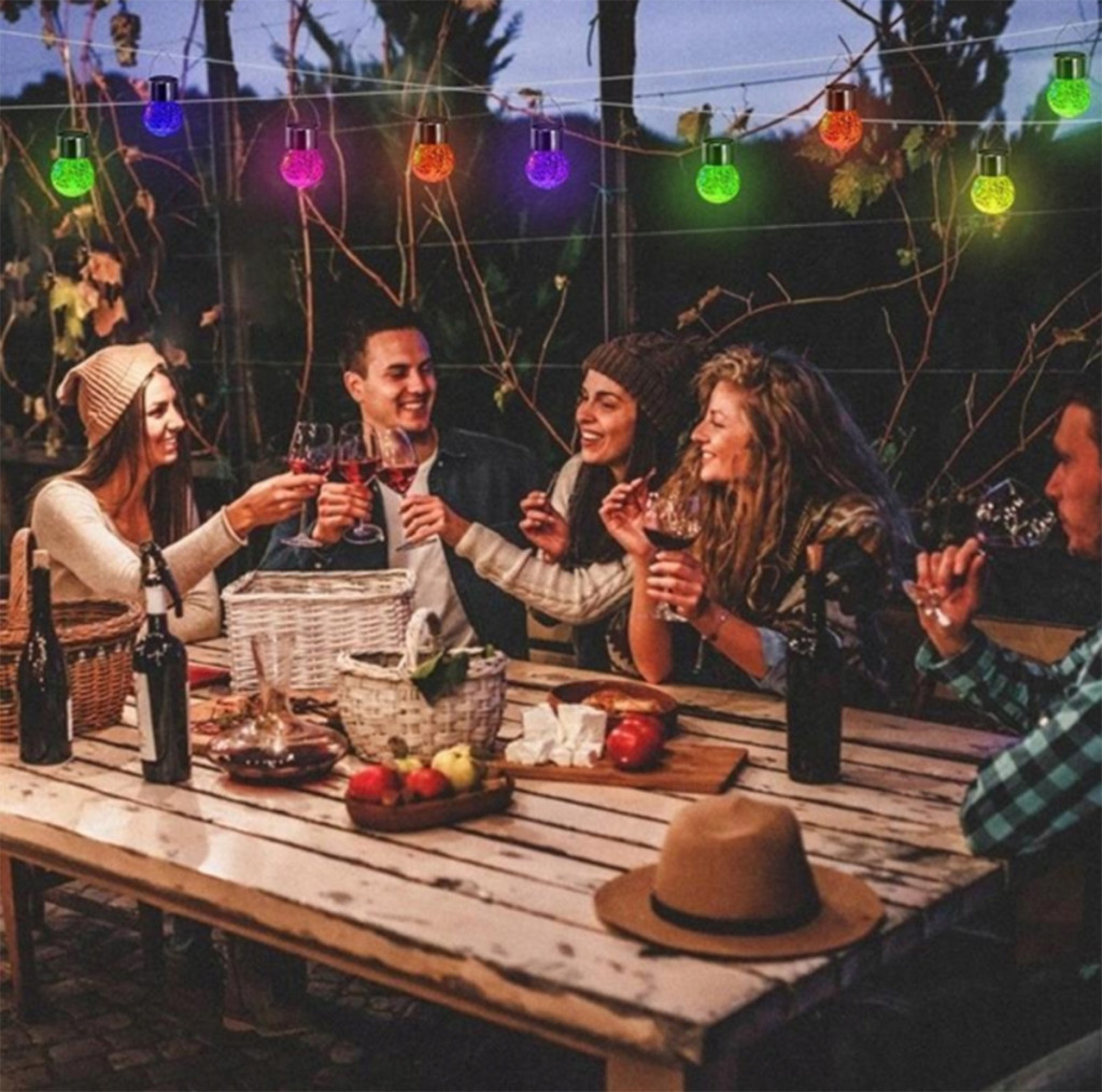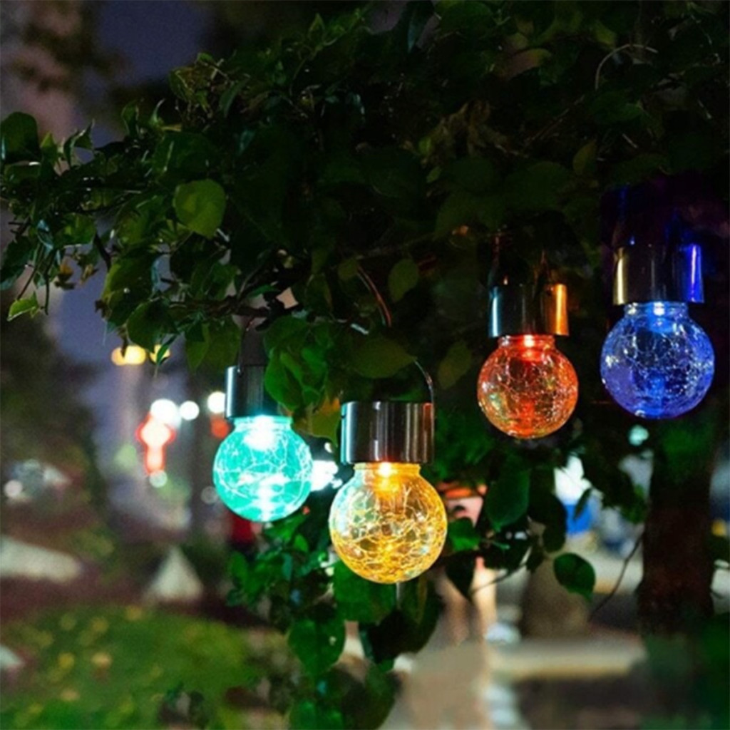 LED napelemes golyós kerti lampa RGB függő üveg repedezett üvegeffektussal
