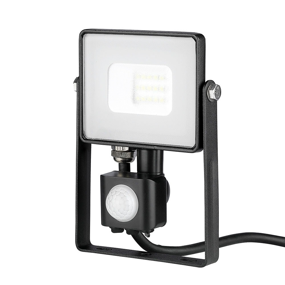 LED reflektor 10W 800lm 4000K IP65 Fekete mozgásérzékelővel és CUT-OFF funkcióval Samsung Chip VT-10-SB V-TAC