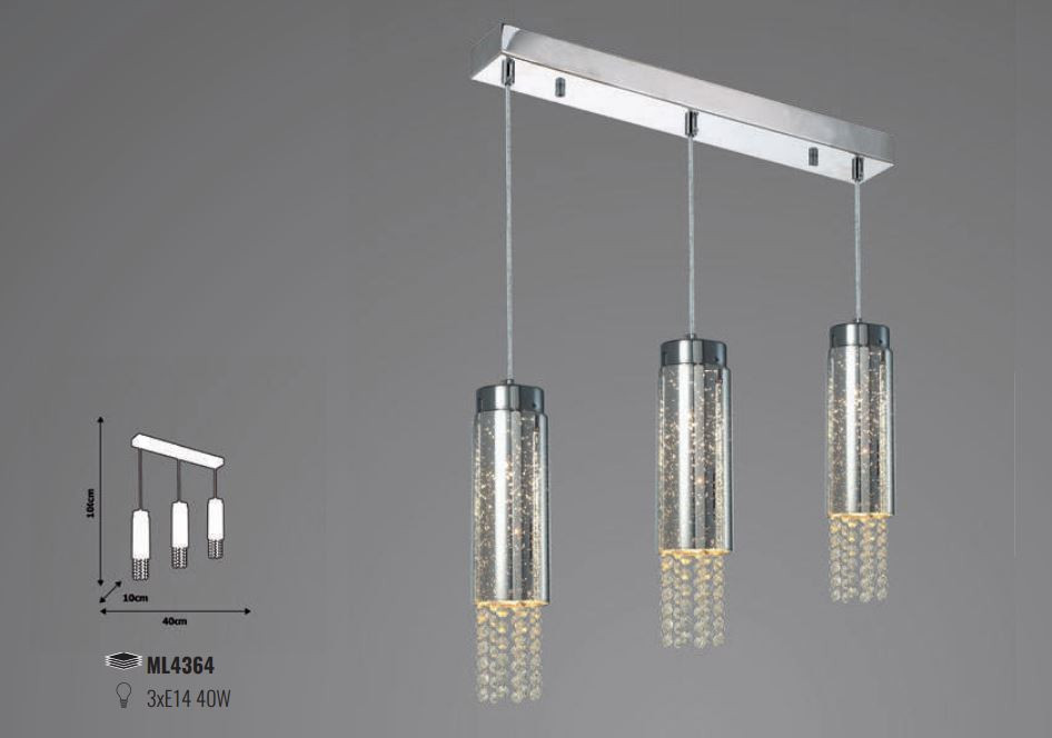 MOONLIGHT mennyezeti függesztett lámpa 3xE14 MILAGRO glamour króm fémüveg