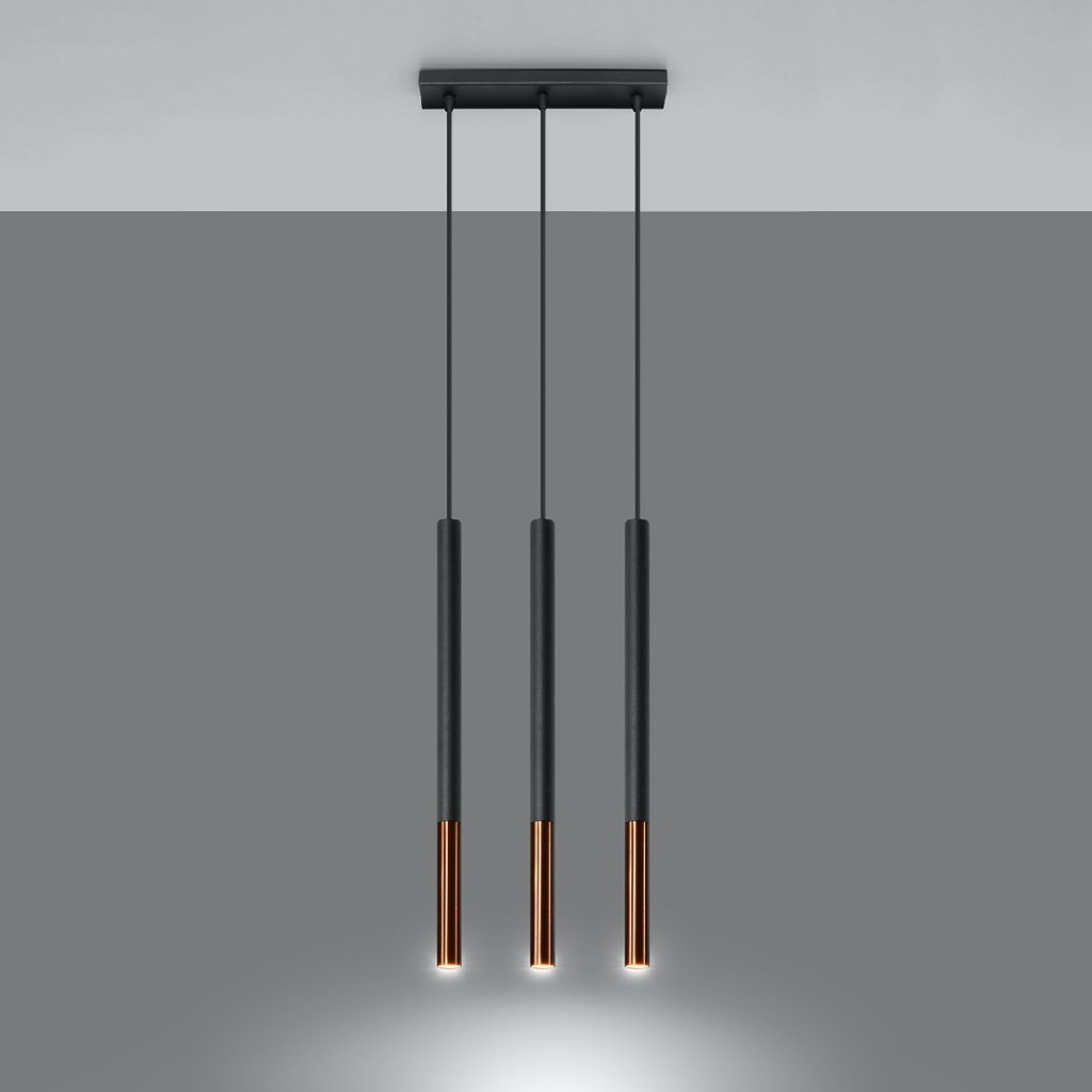 MOZAICA 3L 3xG9 függesztett mennyezeti lámpa elegáns fekete és réz SOLLUX