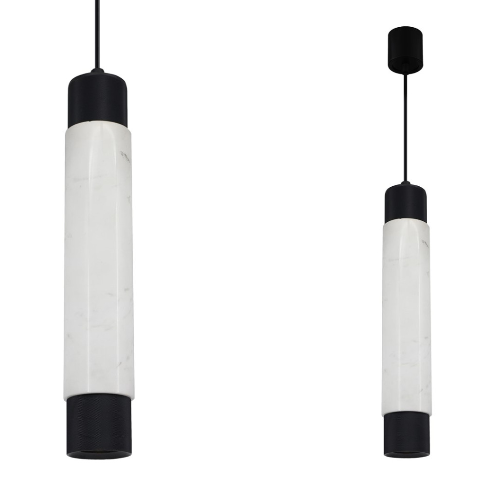 Márvány függőlámpa 1xGU10 hosszúkás hengeres ernyő fekete fehér ML6341 Milagro fém + márvány