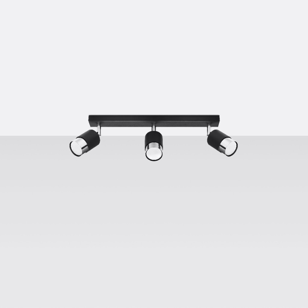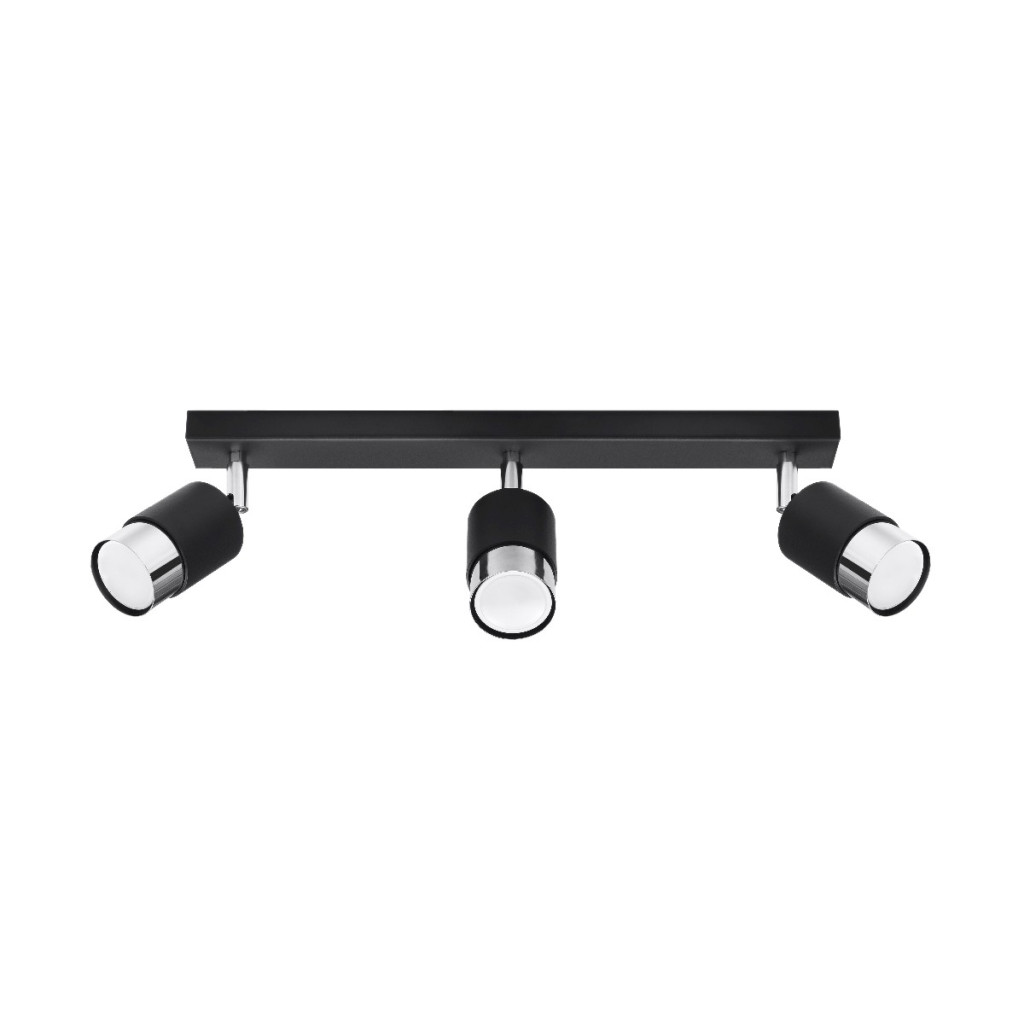 NERO mennyezeti lámpa 3xGU10 fényvisszaverő mozgatható halogén lámpatest 45cm fekete króm SOLLUX