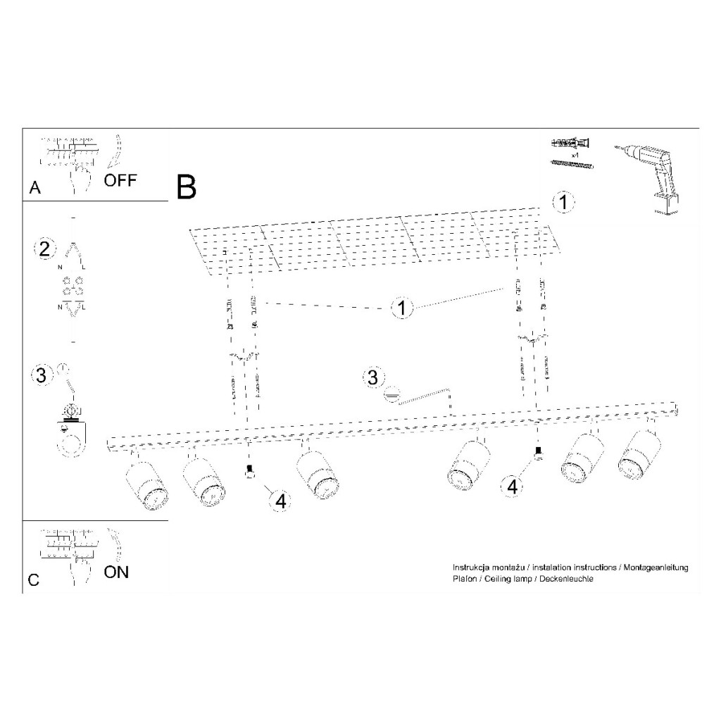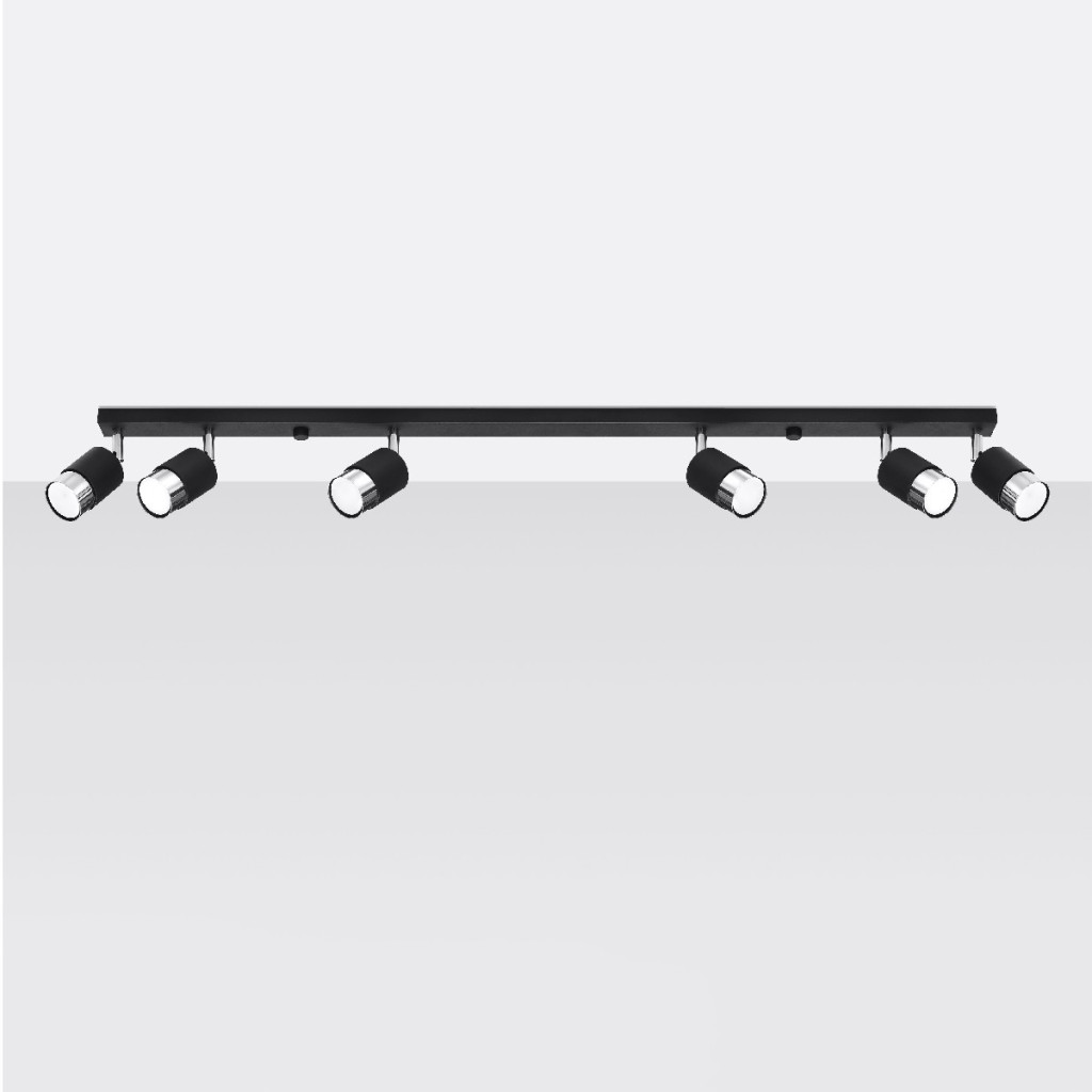NERO mennyezeti lámpa 6xGU10 reflektoros mozgatható halogén lámpatest 117cm fekete króm SOLLUX