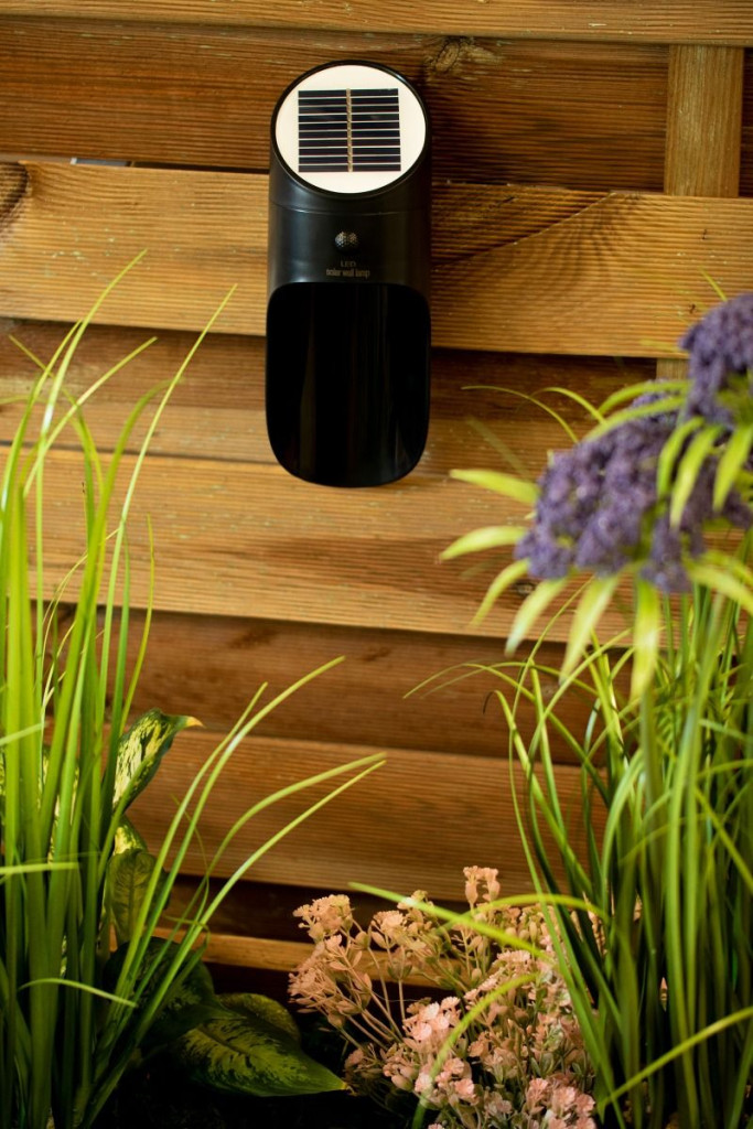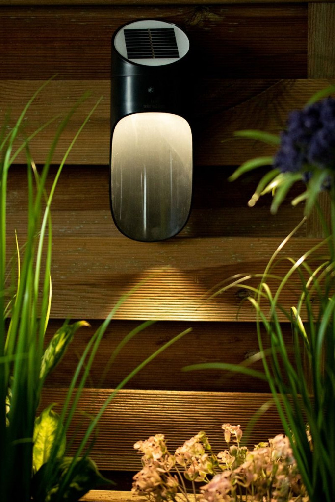Napelemes kerti fali lámpa LED homlokzati lámpa 5000K mozgásérzékelő fekete
