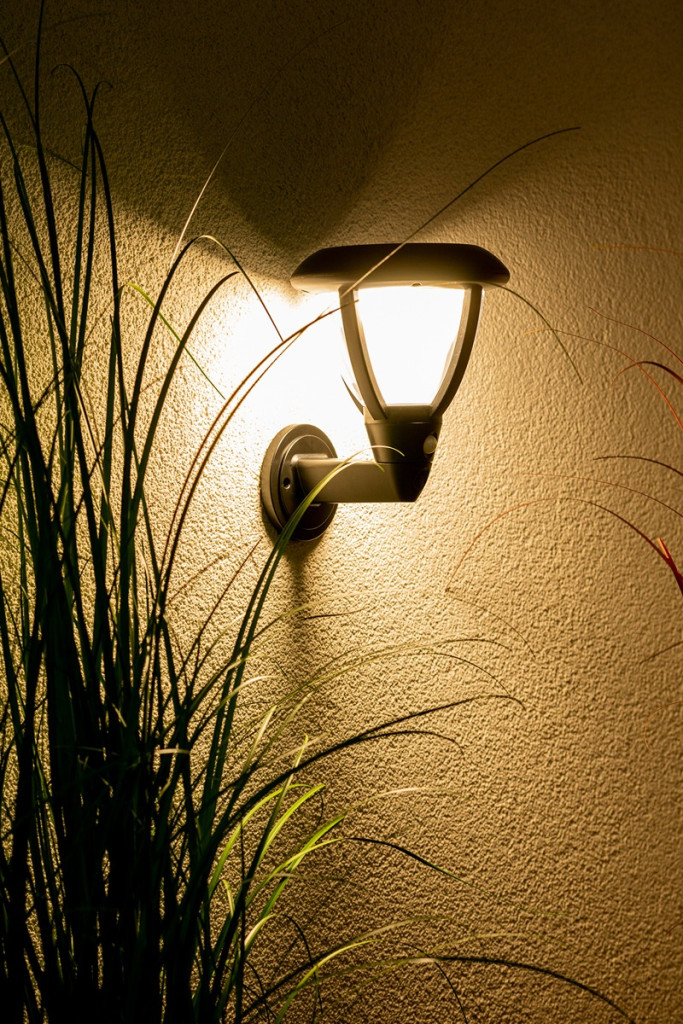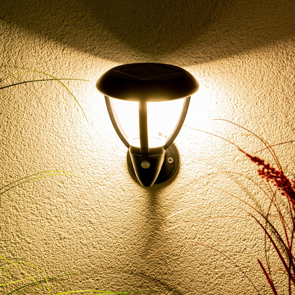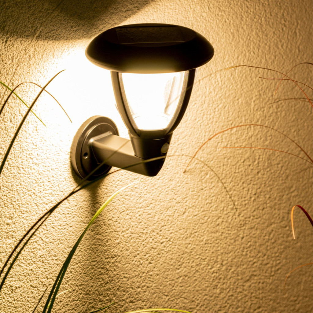 Napelemes kerti fali lámpa emelő LED fali lámpatest mozgás- és szürkületérzékelővel 4000K IP44
