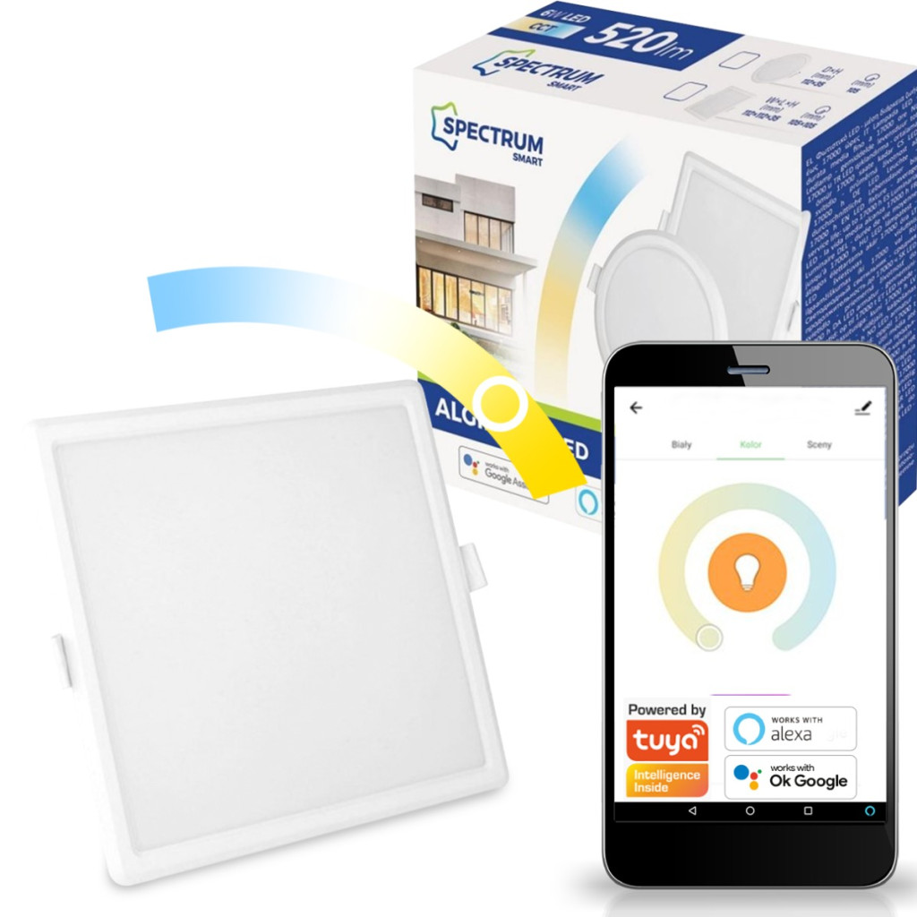 Négyzet alakú LED panel süllyesztett 6W CCT ALGINE SPECTRUM Smart TUYA WiFi szabályozható