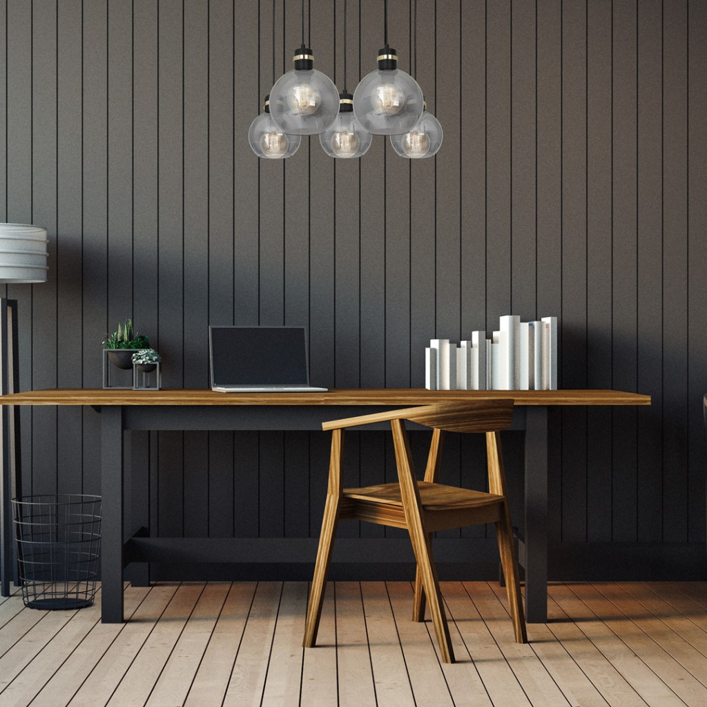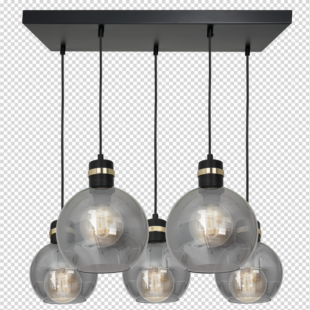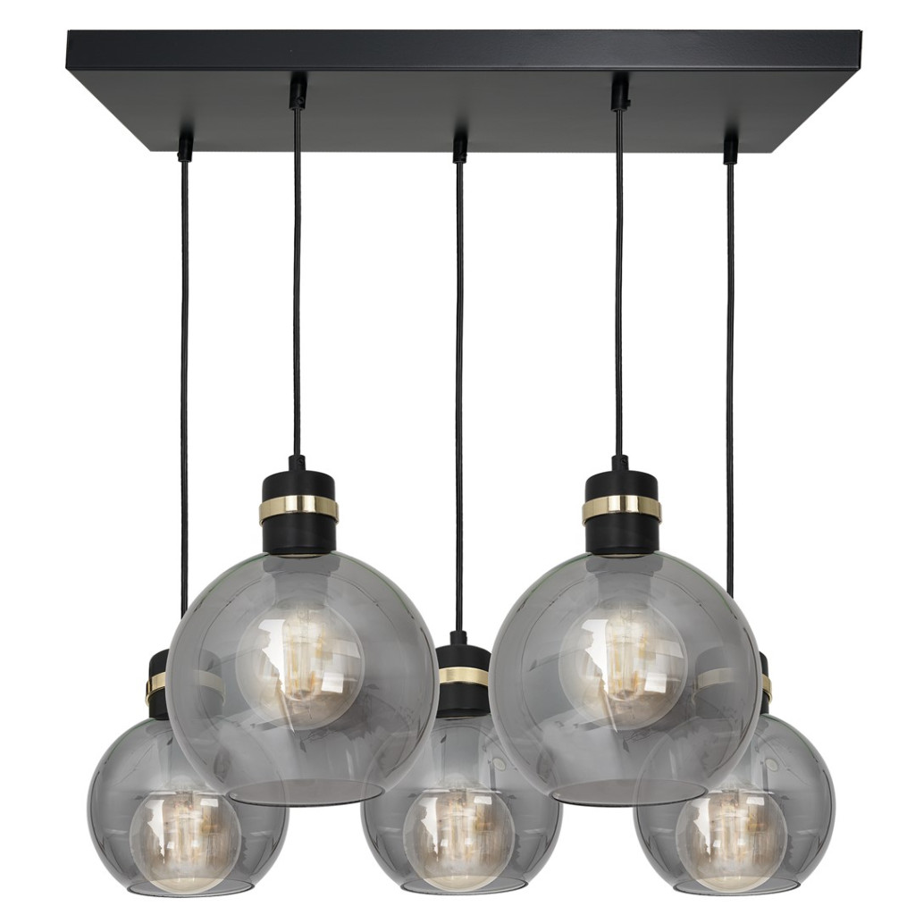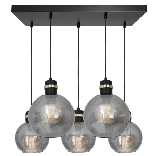 OMEGA függőlámpa 5xE27 téglalap füstölt üveggömb MLP6535 Milagro fém + üveg