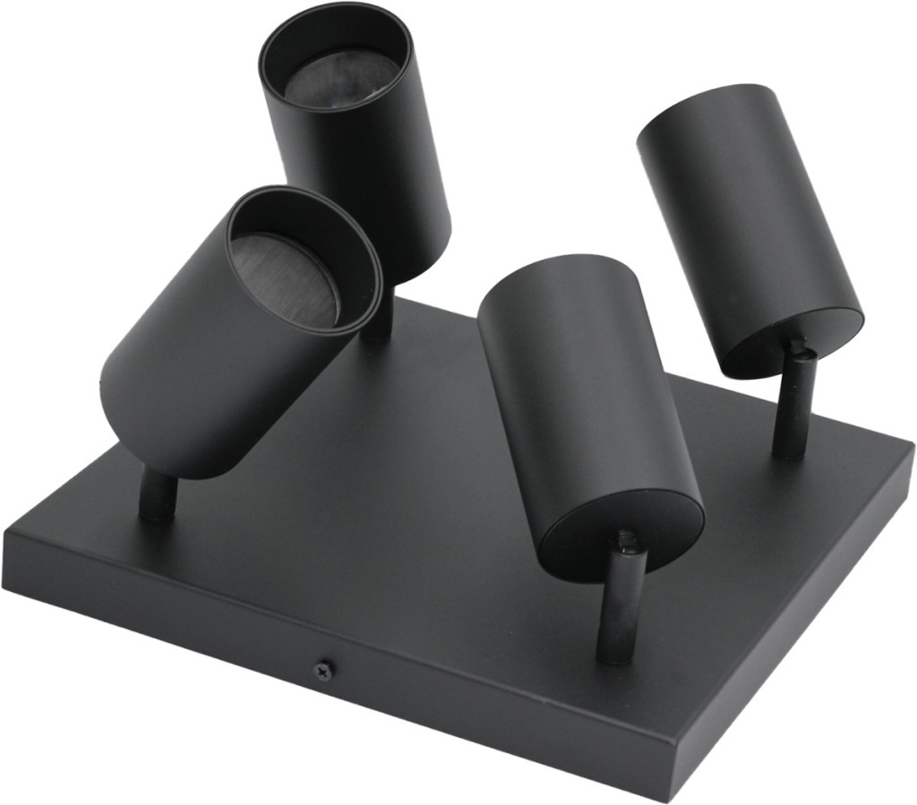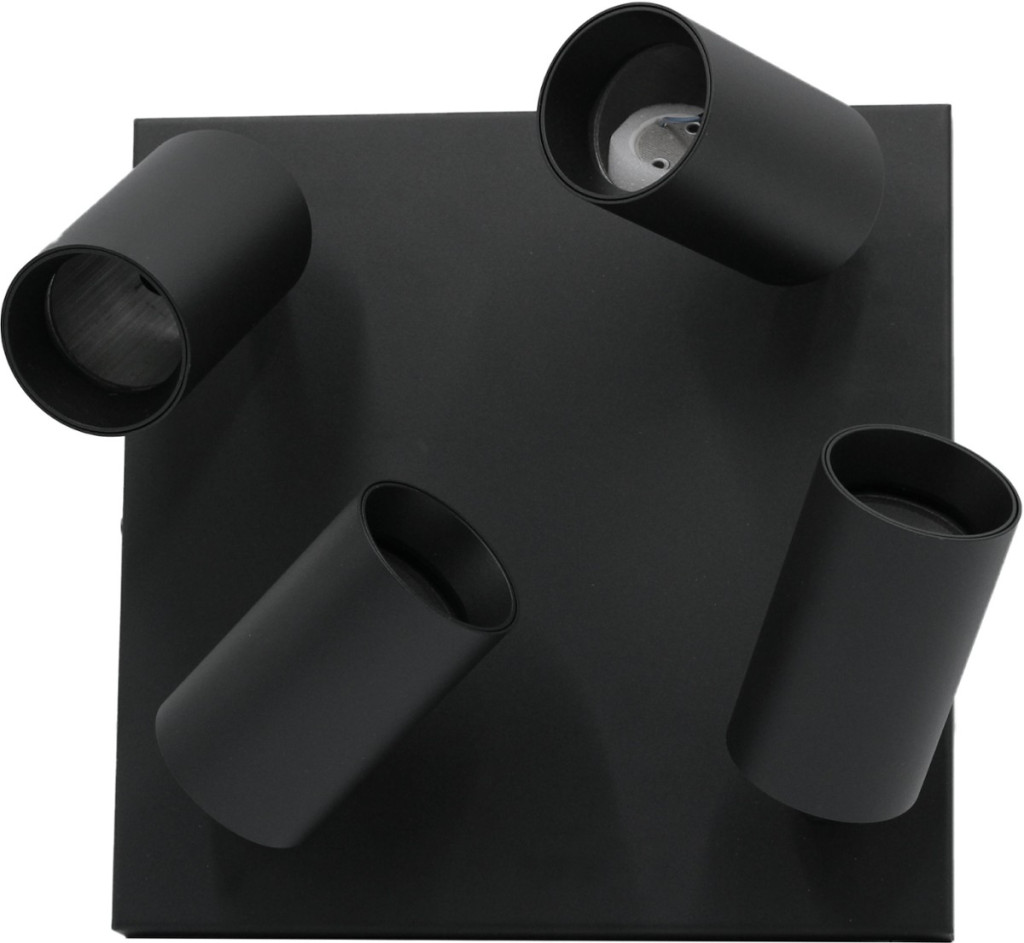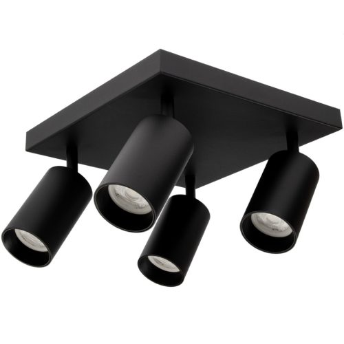 Mennyezeti lámpa, QUALIS sorozatú fali lámpa négy fényponttal, matt fekete, kiváló minőségű alumíniumból. A fali lámpa maximum 50W teljesítményű, GU10-es talpú izzókhoz készült. A mennyezeti spotlámpák helyiségek díszvilágítására szolgálnak, az állítható reflektornak köszönhetően a fényt a megfelelő helyre tudjuk irányítani. A reflektor GU10 menetes talppal van felszerelve . A cserélhető fényforrású lámpa előnye, hogy igényünknek megfelelő világos színű izzót választhatunk (az izzó maximális teljesítménye nem haladhatja meg az 50W-ot).